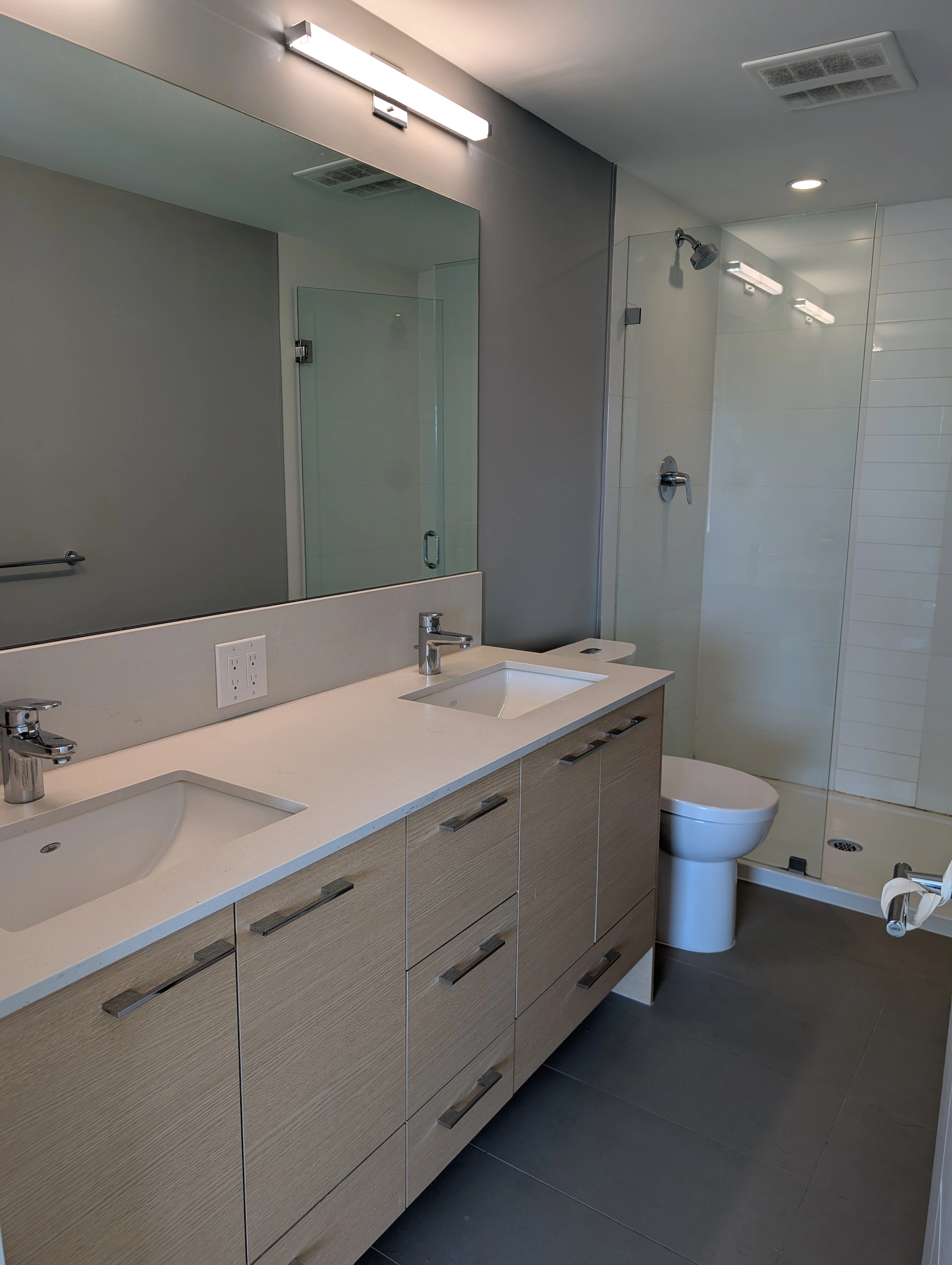 Welcome to your new home in the heart of Surrey Central! This bright and spacious 2-bedroom, 2-bath penthouse suite offers comfort, privacy, and convenience, perfect for families or professionals looking for a quiet retreat just minutes from transit and city life. Highlights - Size & Layout: 1,050 sqft with high 8-ft ceilings, large windows, and a smart floorplan. Both bedrooms feature their own walk-in closets and full bathrooms. - Features: Enjoy a private balcony facing greenery, laminate & carpet floors, and the peace of being on the top floor with no upstairs neighbours. - Convenience: In-suite laundry, gym, recreation room, and a shared rooftop patio for relaxing or entertaining. Location - Just 10 minutes to Surrey Central Station, with a bus stop nearby. - Family-friendly: Our Lady of Good Counsel (private) is right across the street and Forsyth Road Elementary is just around the corner. - A children’s park with an off-leash dog area sits right next door. Lifestyle - This home combines urban convenience with a peaceful, community feel. It’s perfect for families and professionals seeking a bright, quiet space close to schools, transit, and green space. Details - Rent: $2,300/month (utilities not included) - Availability: Immediate - Pet Policy: No pets