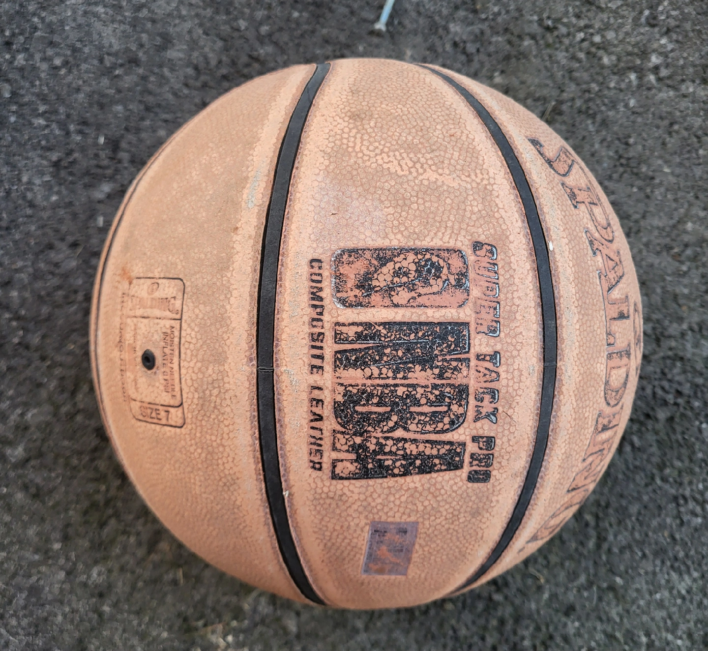 Selling a Spalding NBA Super Tack Pro composite leather basketball in size 7. It's in used condition but still has plenty of life left for some great games.