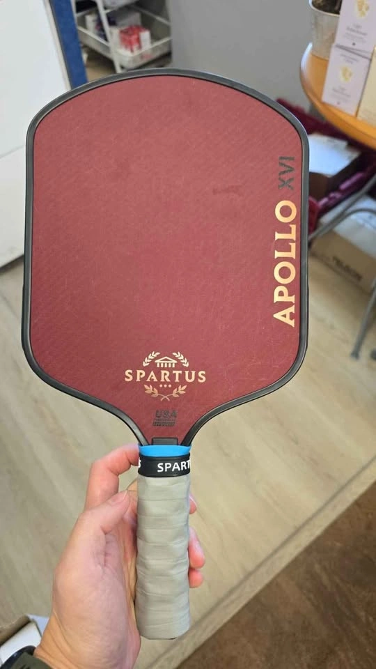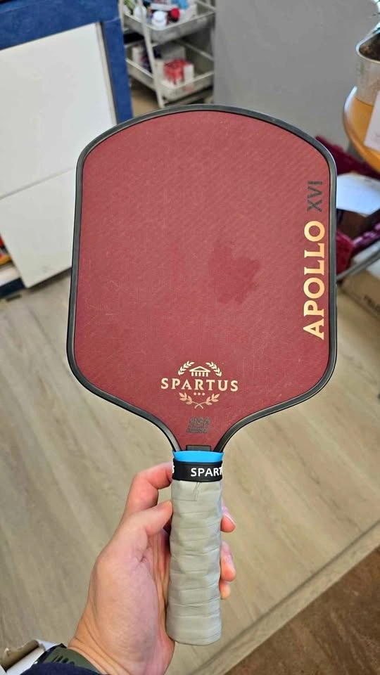 It's a good soft paddle. Great for control. Wide body shape which gives you good hand speed and blockage at the kitchen. Minor stretches on edge guard and stain on the surface. They don't affect how it plays. I have a removable hexagon grip put in place for nicer grip. Comes with free paddle cover. Retails after Tax about $225. Can meet at pacific, south arm, Hugh Boyd.