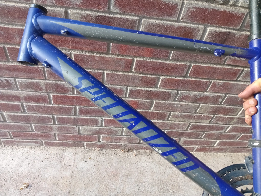 Selling a Specialized Vita bike frame. It's blue and has some wear and tear, as you can see in the photos. Comes with the seat, pedals, and chain. Perfect for a DIY project or replacing a damaged frame! Asking $65