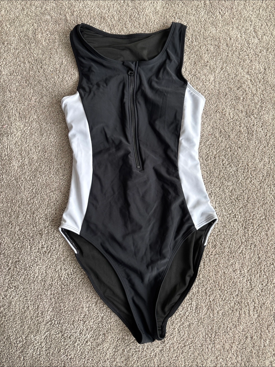 Selling a Speedo swimsuit in black and white. It's in great condition and ready for the pool or beach! SHEIN brand