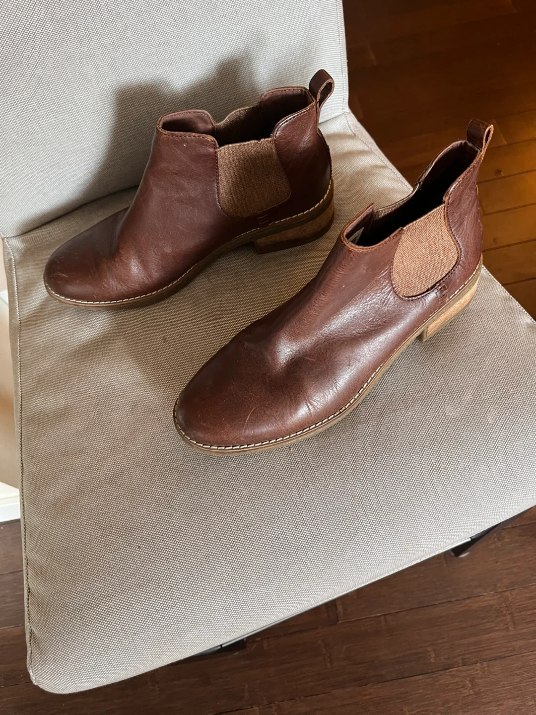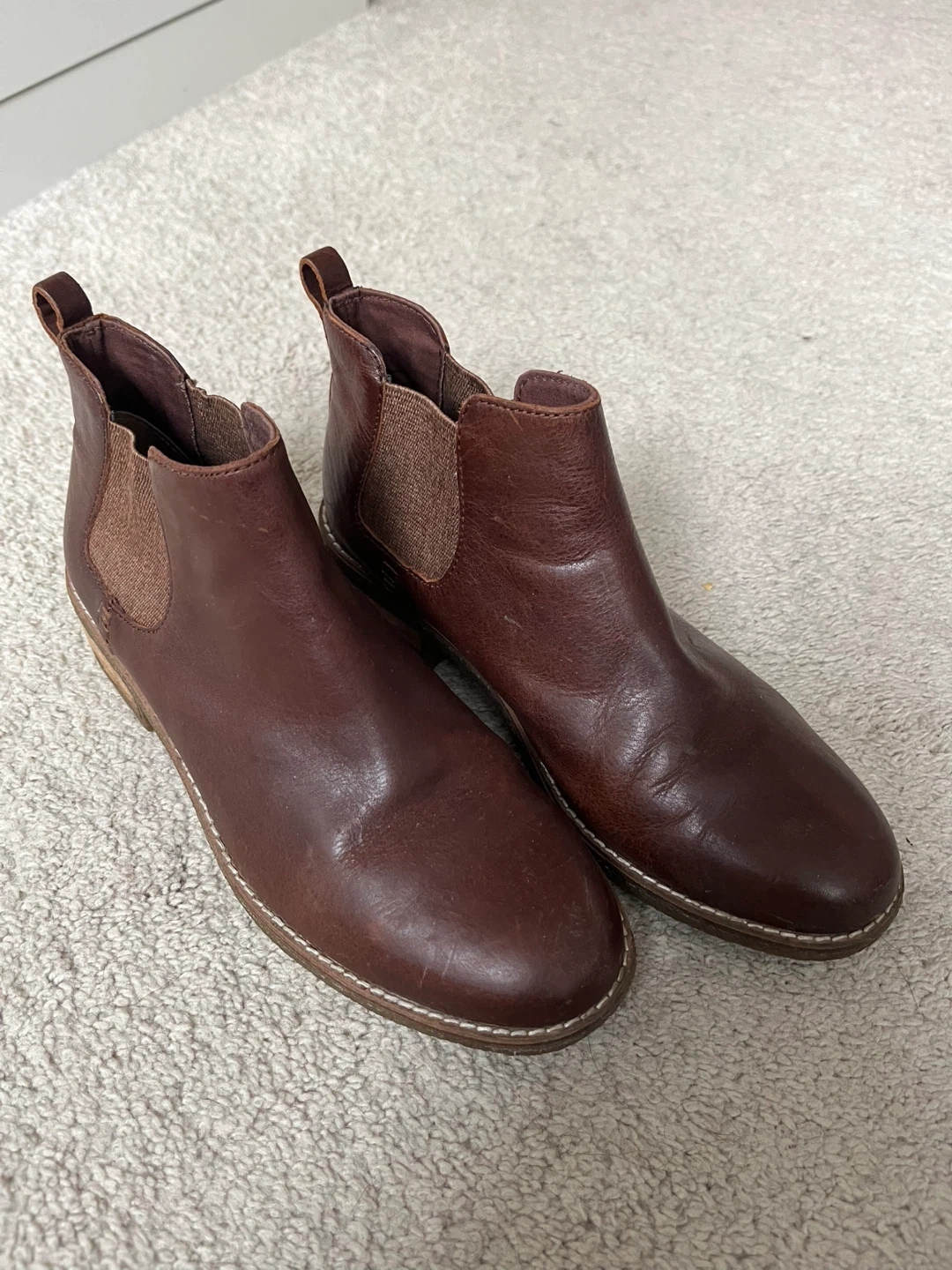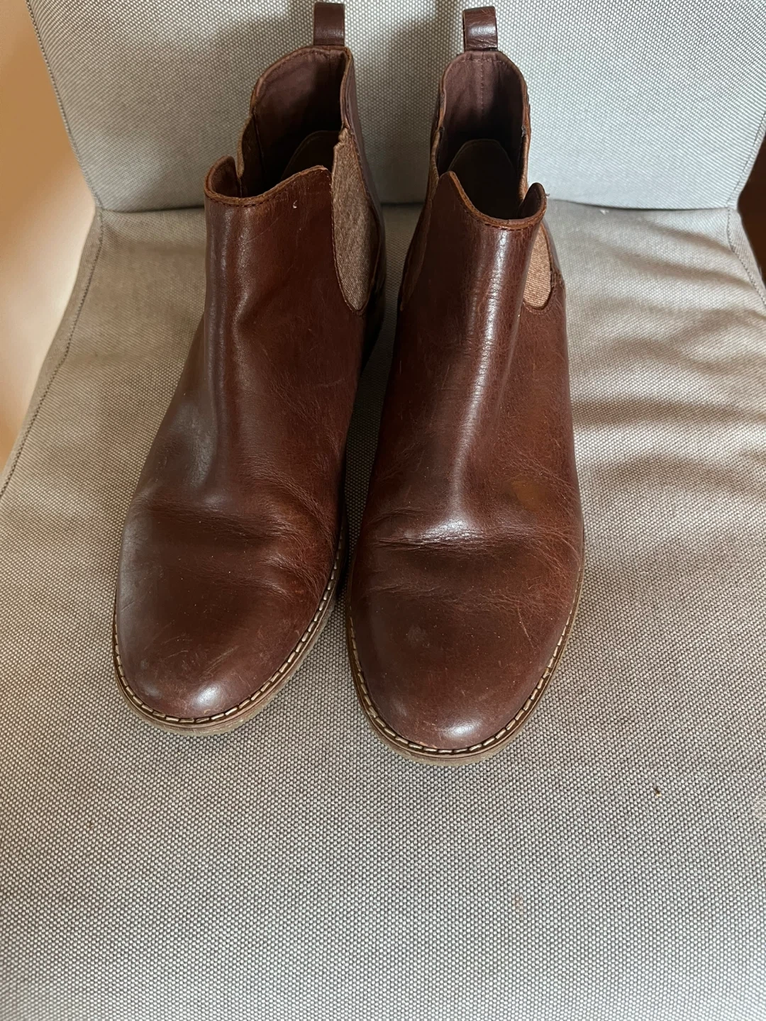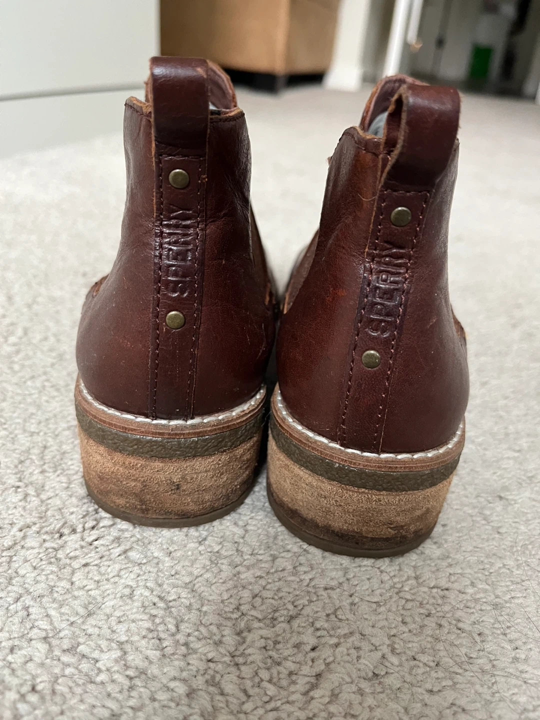 Selling a pair of Sperry brown leather Chelsea boots. They are super comfy and in excellent condition!