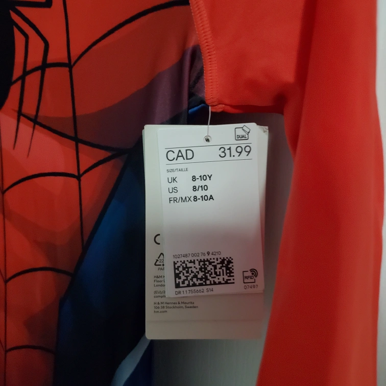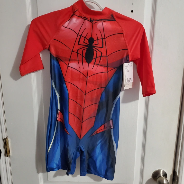 Red and blue Spider-Man rash guard, size 8-10 years. Long sleeves, suitable for swimming or sun protection. New with tags.