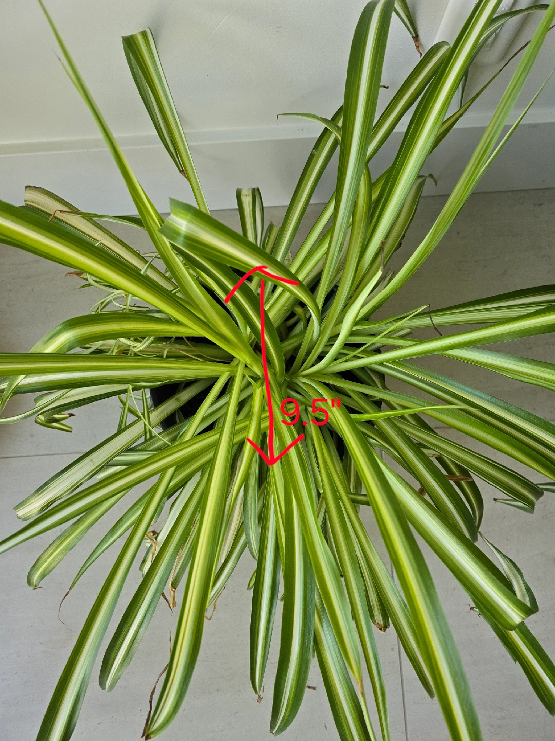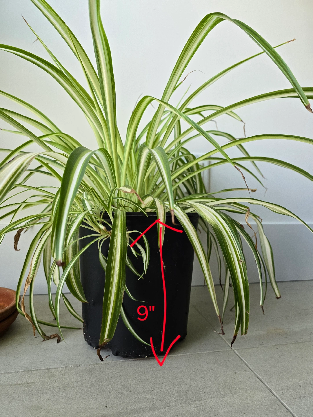 Selling a healthy spider plant in a simple black plastic pot. It's about 9" tall and 8.5" wide, a great size for adding some greenery to your space