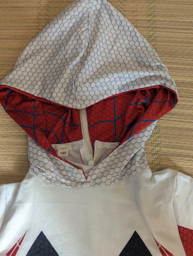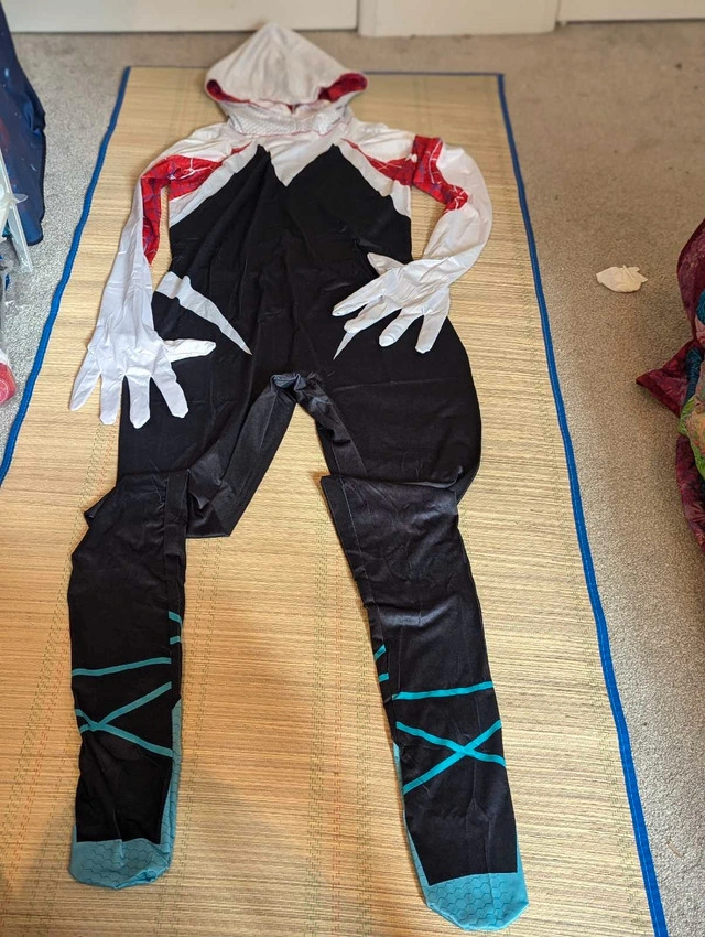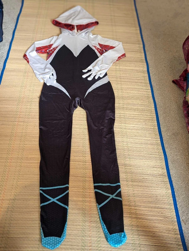 Suit up like a web-slinging hero with this Spiderman costume! This eye-catching and vibrant suit is designed to bring the iconic character to life, perfect for Halloween, cosplay, or just everyday fun. The costume features a sleek, form-fitting design with detailed web patterns, capturing the essence of Spiderman's classic look. This item is brand new never used.