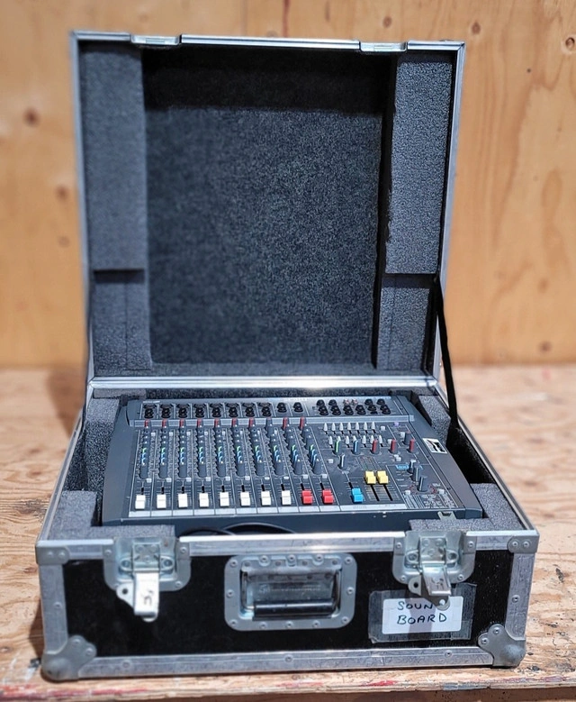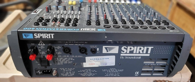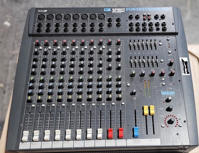 10-channel (8-mics plus 2 stereo) Spirit Power Station 600W, analog sound board mixer. In good, used condition with road case. Asking $300