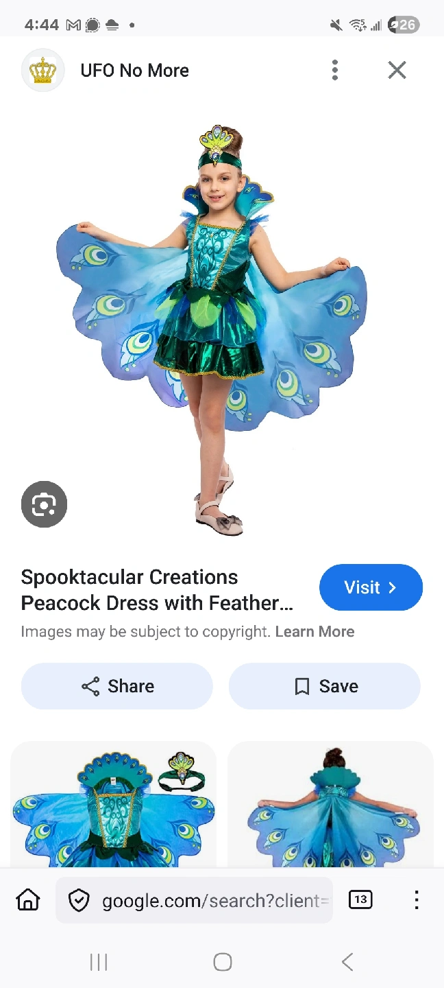 Peacock costume size 4-5 with beautiful details, wings and lots of poof excellent condition, like new