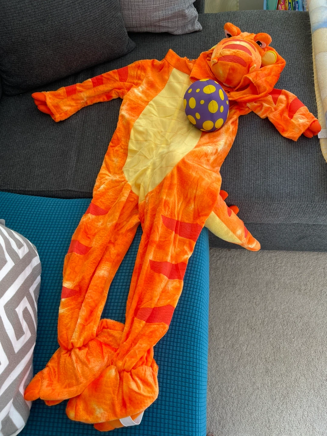 Selling a cute Spooktacular Creations child dinosaur costume, complete with the egg accessory! Mom purchased this for my Daughter few months ago for a bday party but we didn’t had a chance to attend it and perfect for Halloween or dress-up parties. The colour is a vibrant orange, sure to make your little one stand out. She just tried them for fitting.