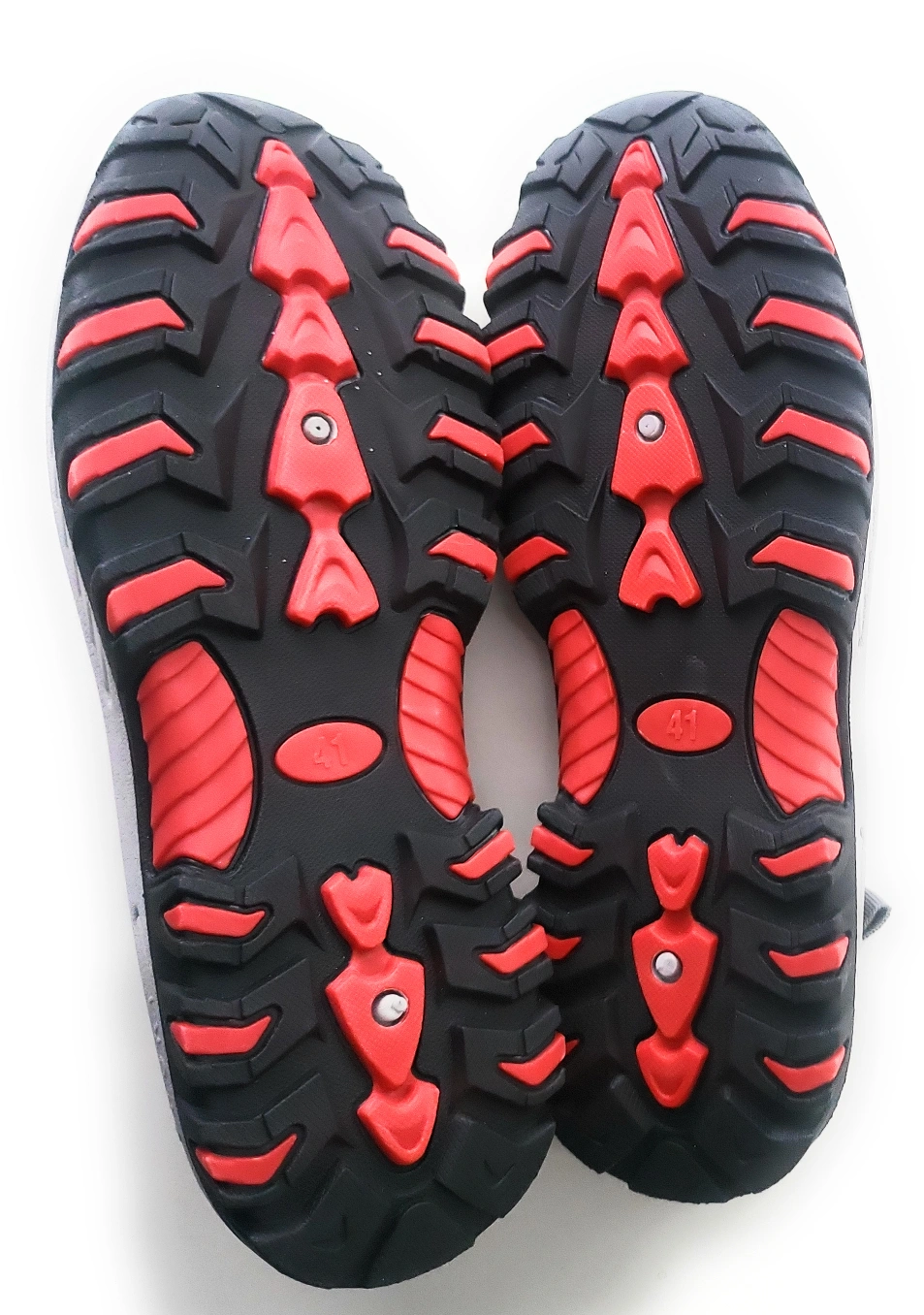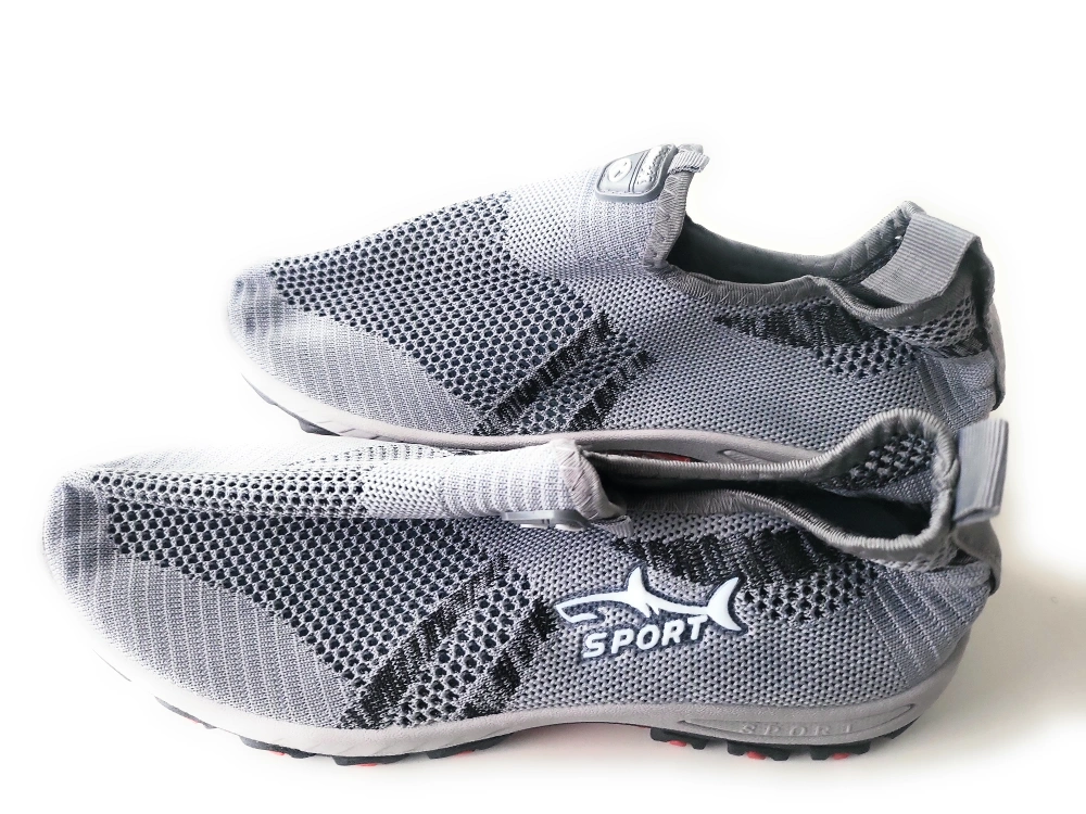Selling a pair of grey slip-on shoes. They have a sporty design and are in good condition. The soles are black and red rubber. Size 41.