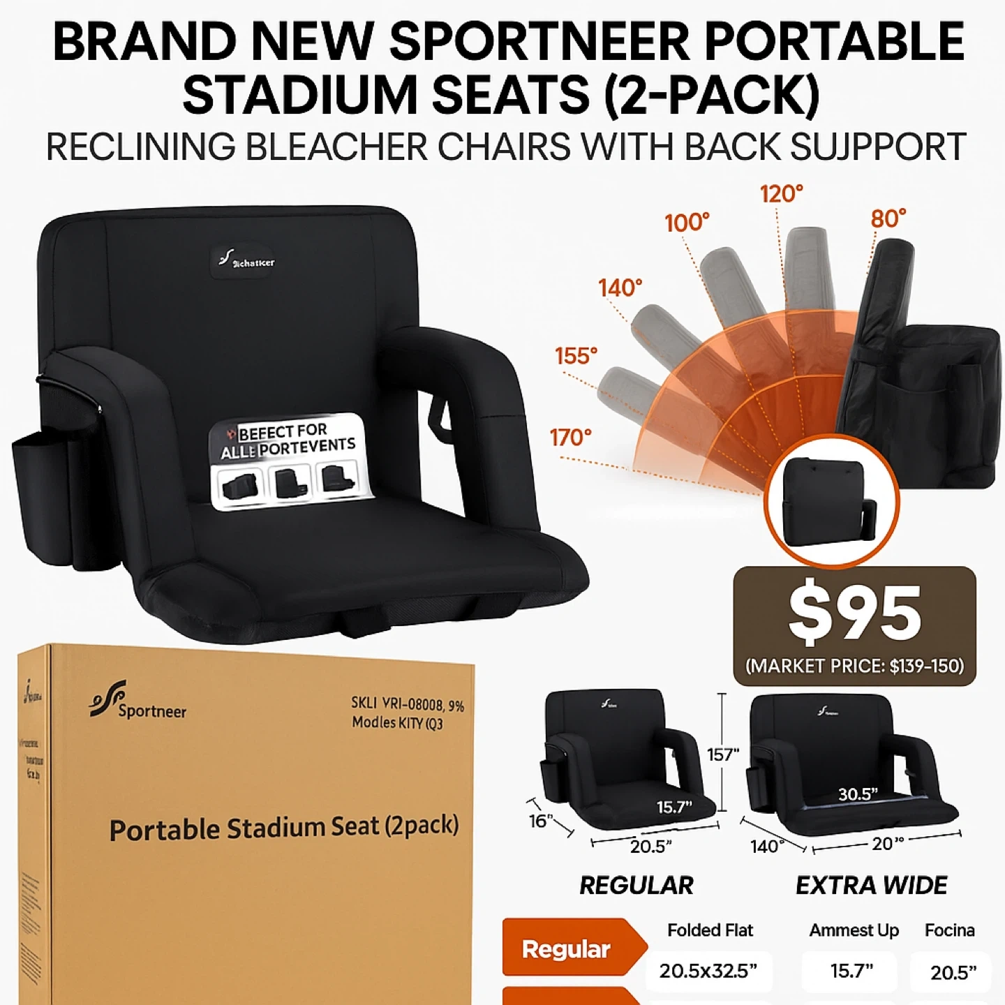 Selling a brand new Sportneer Portable Stadium Seat in a 2-pack! This reclining bleacher chair comes with back support, perfect for any event. - Extra wide - Anti-slip bottom - Bottom buckle for secure placement Comes in its original box! ✔️ Brand New & Sealed – Never Used ✔️ Set of 2 Stadium Seats – Perfect for couples, friends, or family ✔️ Adjustable 6 Reclining Positions – Find your perfect comfort angle ✔️ Durable, Padded Design – Extra thick cushioning for hours of support ✔️ Foldable & Portable – Easy to carry with built-in straps ✔️ Side Pockets – Handy storage for bottles, snacks, or phone ✔️ Fits Standard Bleachers & Benches ✔️ Extra Wide Comfort – Ideal for all sizes 📦 Model: Sportneer KTY-03 (2 Pack) 📍 Pickup: Midland & Kingston intersection, Scarborough 💲 Price: $95 (Retail ~$130+ on Amazon) 🚭🐾 Smoke-free & pet-free home 💵 Cash Only, Pickup Only 🔗 See similar product on Amazon here: Sportneer Portable Stadium Seat – 2 Pack ⸻ ✨ Perfect for sports parents, concert-goers, campers, and anyone who wants to sit comfortably anywhere!