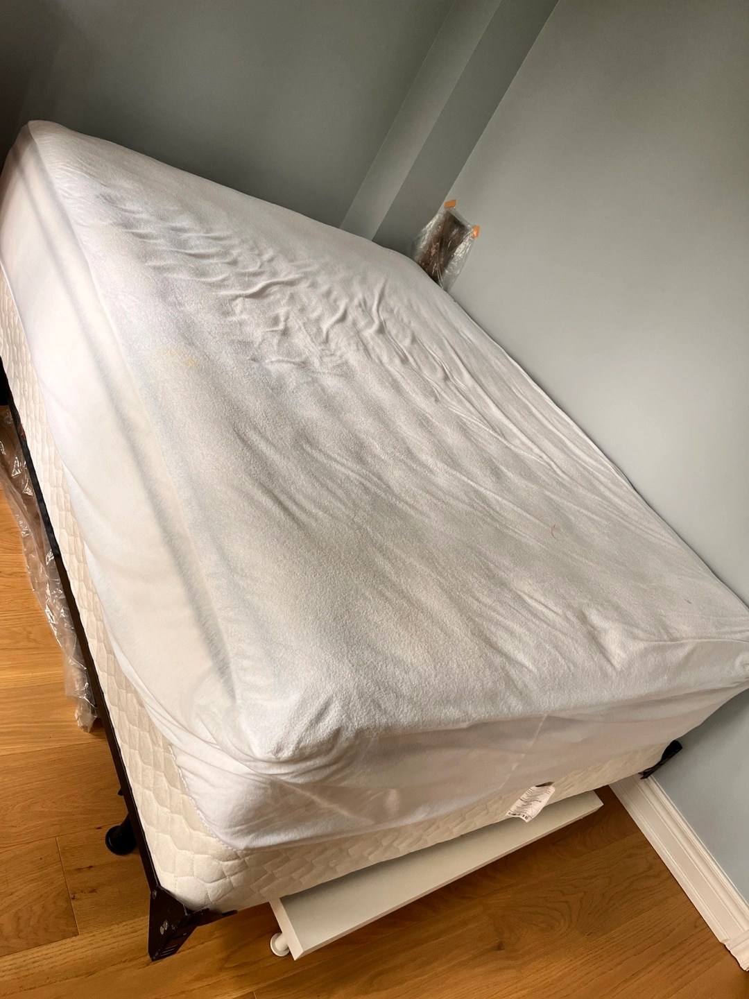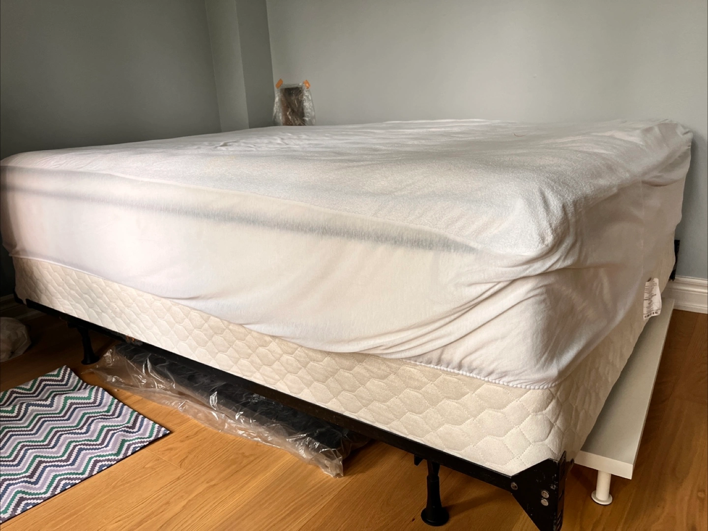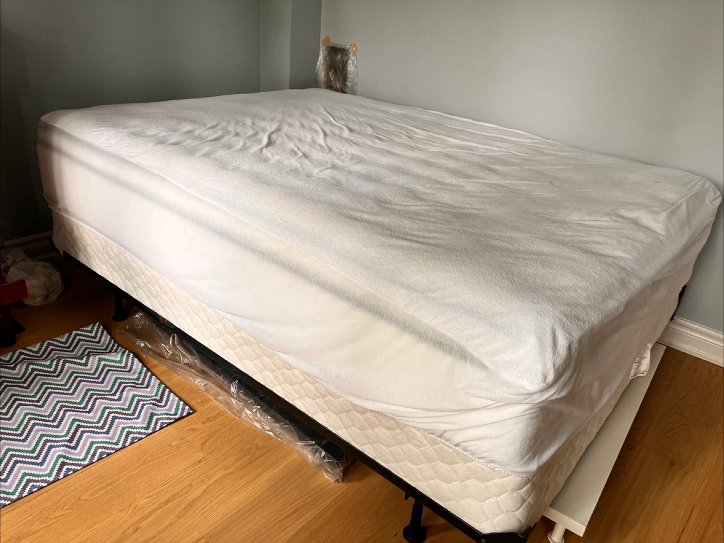 Selling a mattress in good condition. It's been well-maintained. It comes with the box and waterproof cover. Bed frame is also free if you wish but it’s not 100% in good shape. Perfect for a spare room . Available for pick up!