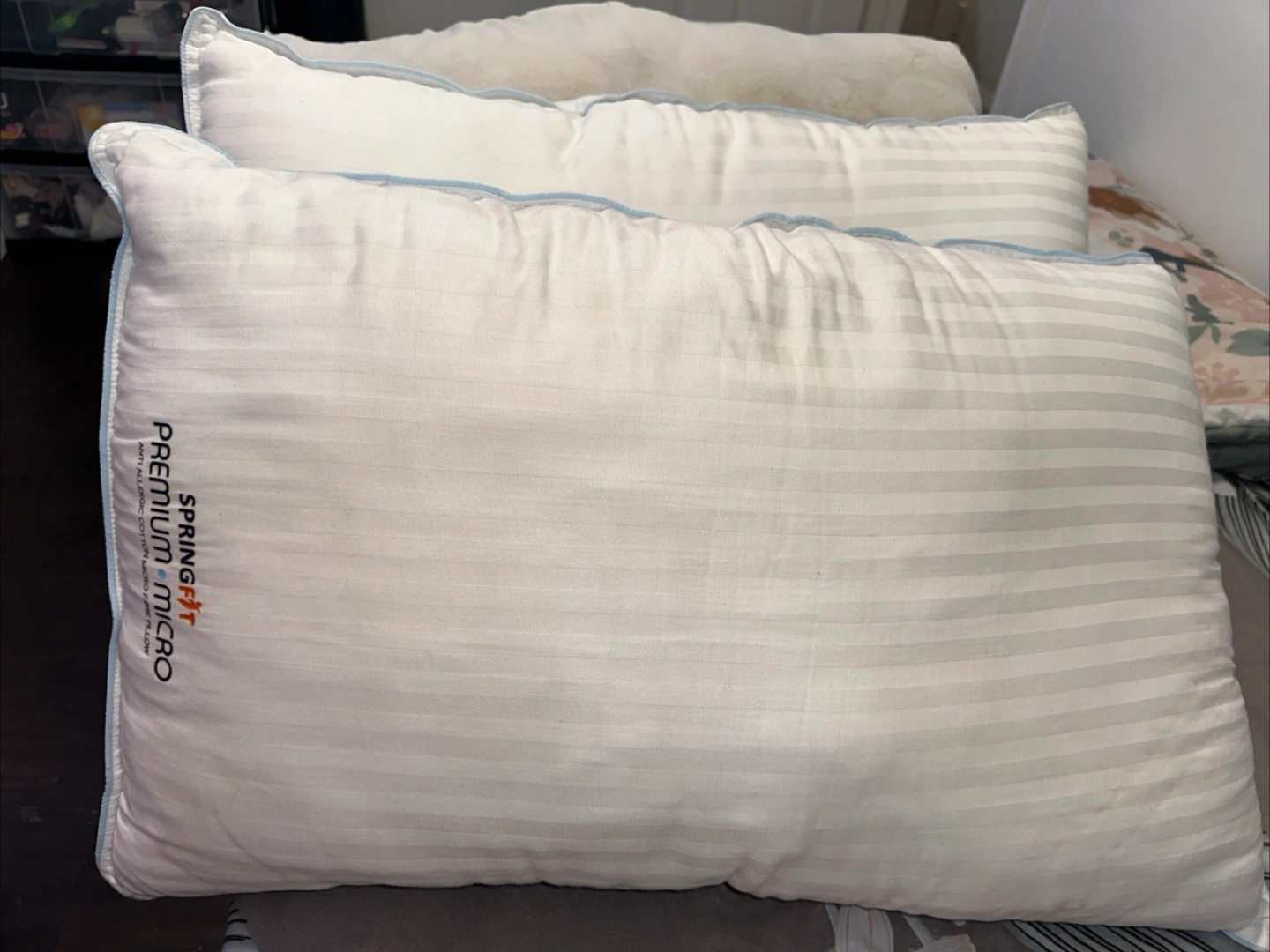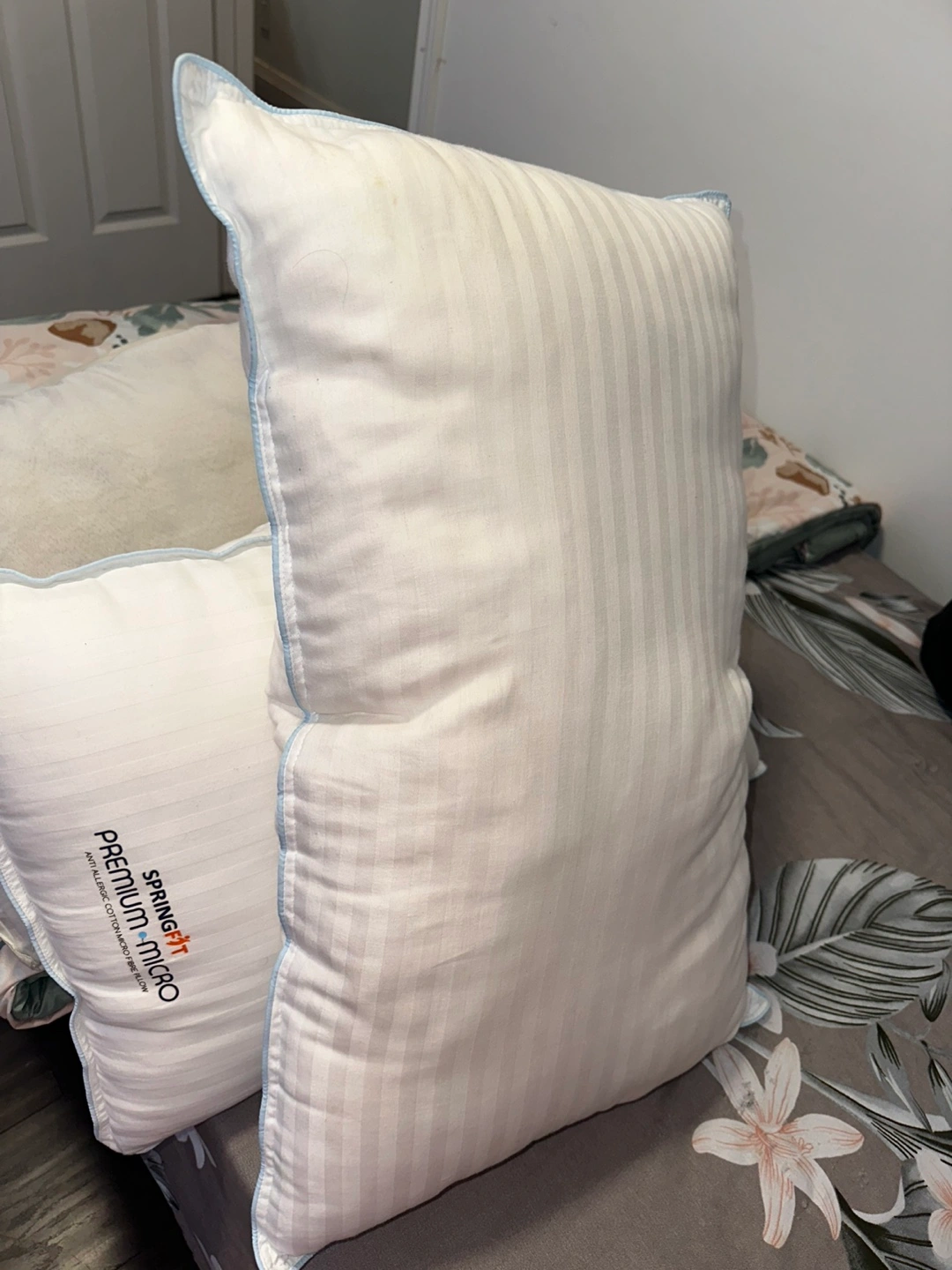 Selling a set of two Springfit Premium Micro pillows! They're super comfy and in great shape. Perfect for a good night's sleep! They are not extremely soft , provide great support to neck while sleeping 10 each