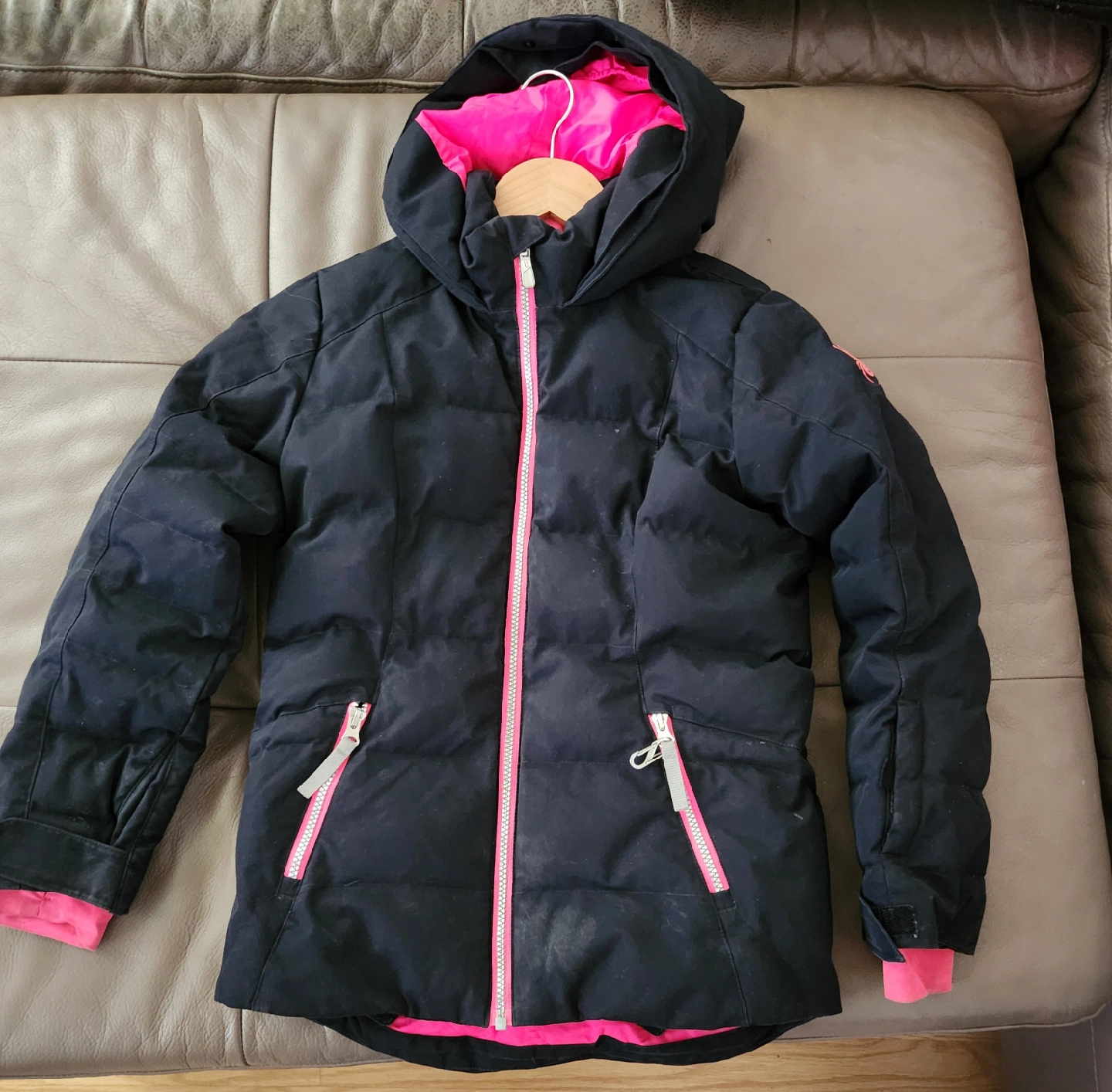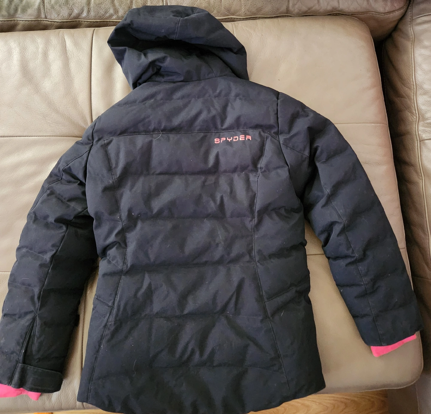 Cozy Spyder winter jacket in black with pink accents! It's in great condition and perfect for staying warm during the colder months. This jacket is sure to keep you snug and stylish Girls 12