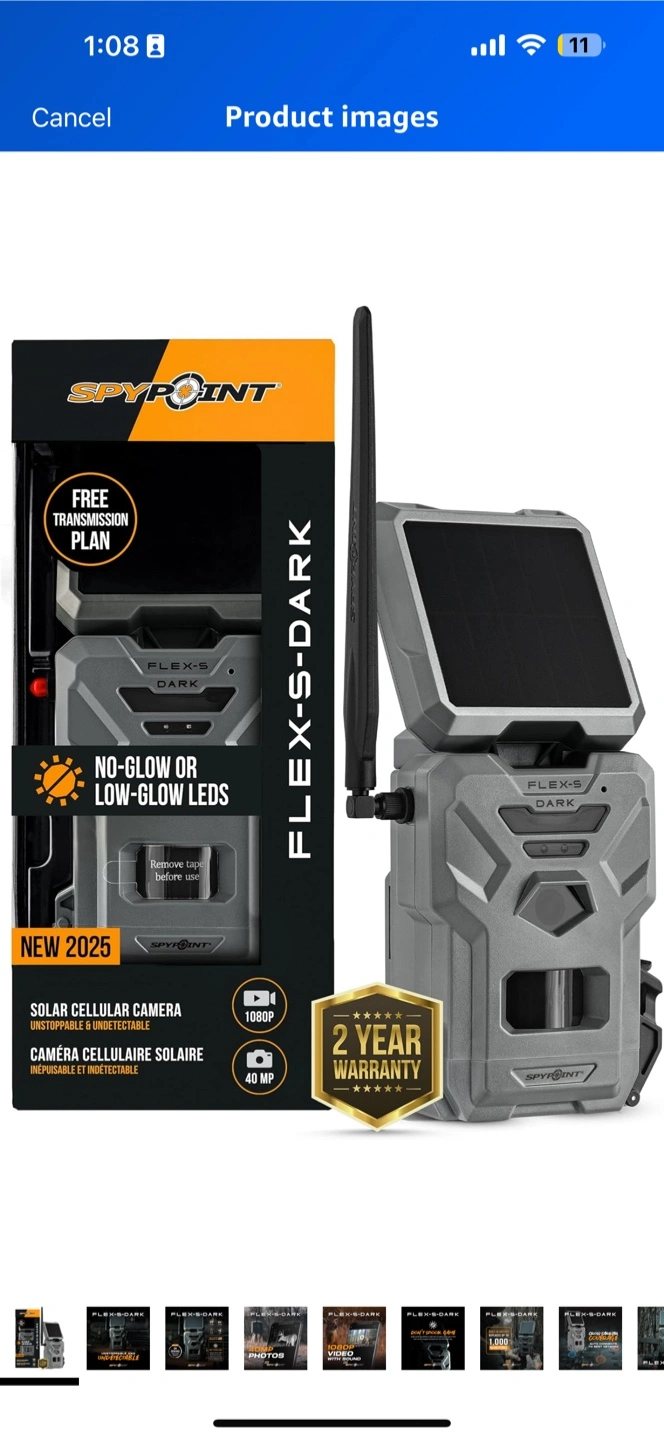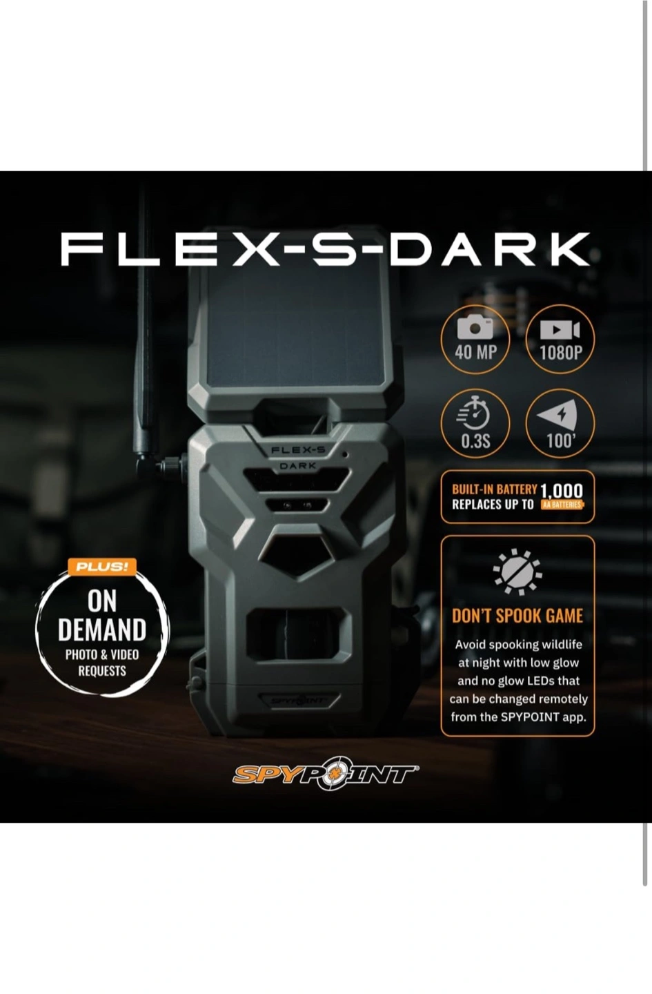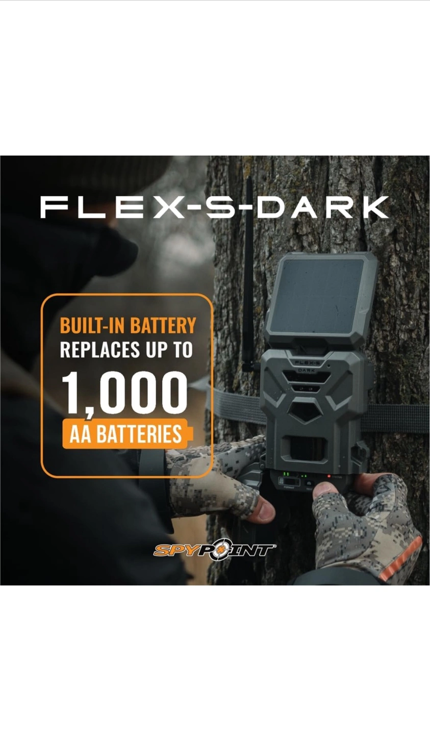 Selling a SPYPOINT FLEX-S-DARK solar cellular camera. This camera is unstoppable and undetectable! It features no-glow or low-glow LEDs and captures 1080p video with sound. The built-in battery replaces up to 1,000 AA batteries. It also has a 2-year warranty.