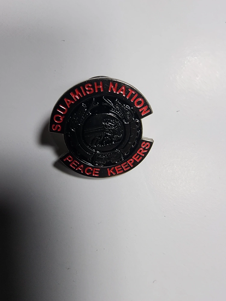 Selling a Squamish Nation Peace Keepers pin. It's in great condition and features the Squamish Nation logo. Perfect for collectors or anyone interested in local history