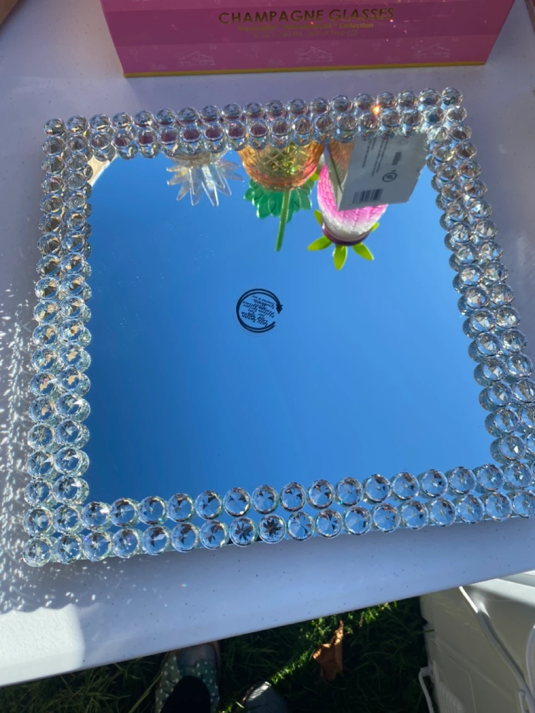 Selling a square mirror with a beaded border. It's in great condition and would be a lovely addition to any room