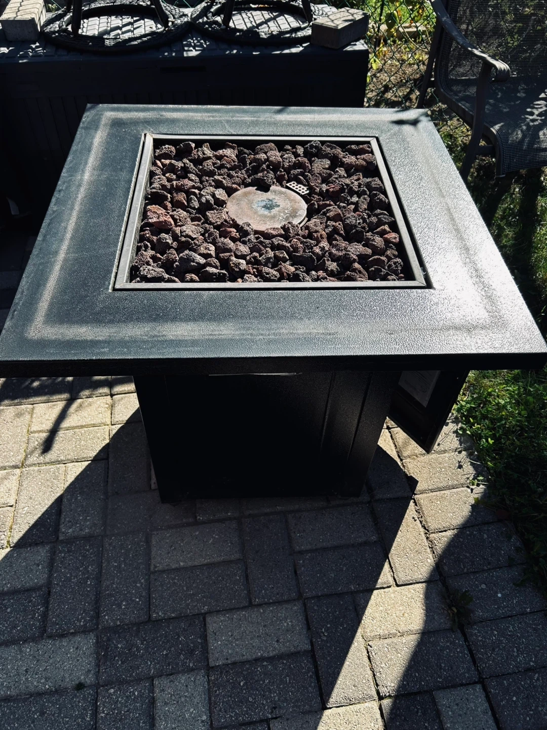 Selling a square outdoor fire pit table. It comes with lava rocks and a cover to protect it from the elements. The fire table uses a propane tank for fuel, which is stored underneath. Perfect for those cool evenings on the patio! Pick up at Dufferin and steeles area