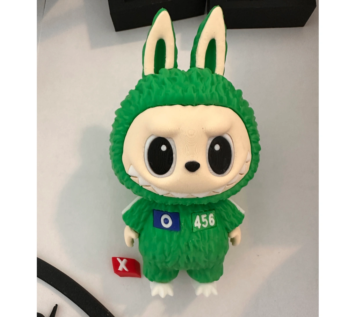 What happens when La Bubu joins Squid Game as Player 456? This hilarious and cool collectible fuses the charm of La Bubu with the mystery of the show—bunny ears, fierce stare, and the iconic green tracksuit with 456 + X badges. Features: High-quality 3D print with hand-painted details Size: 130mm / approx. 5.1 inches tall Great for collectors, fans, and as a unique gift Ready to display on a desk, shelf, or in your fandom space Model design by JDES