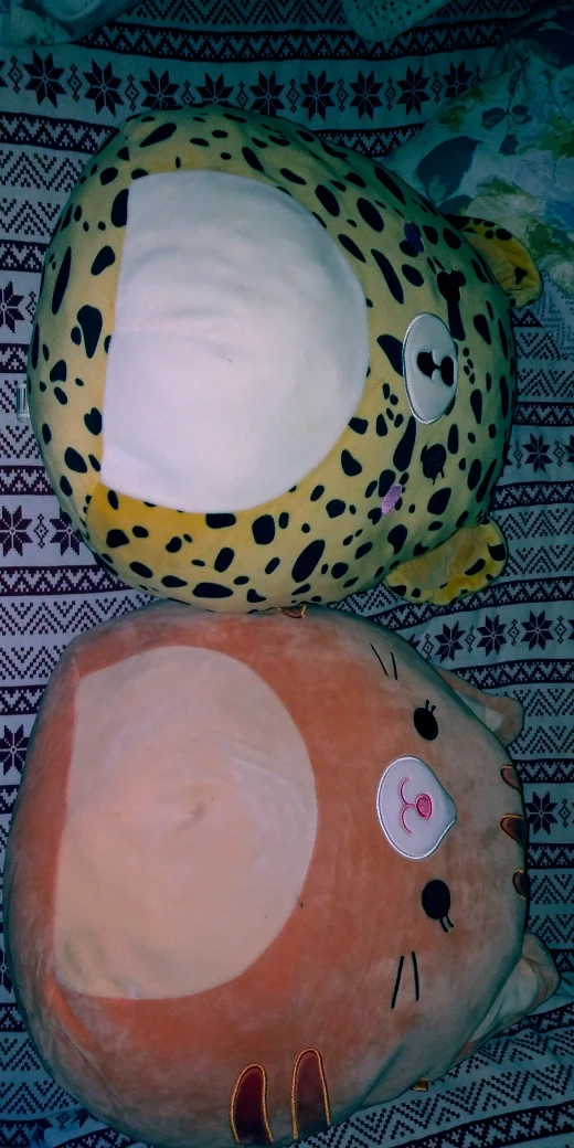 Selling two cute Squishmallow plush toys! One is a leopard print and the other is a cat. They're both in great condition and ready for a new home