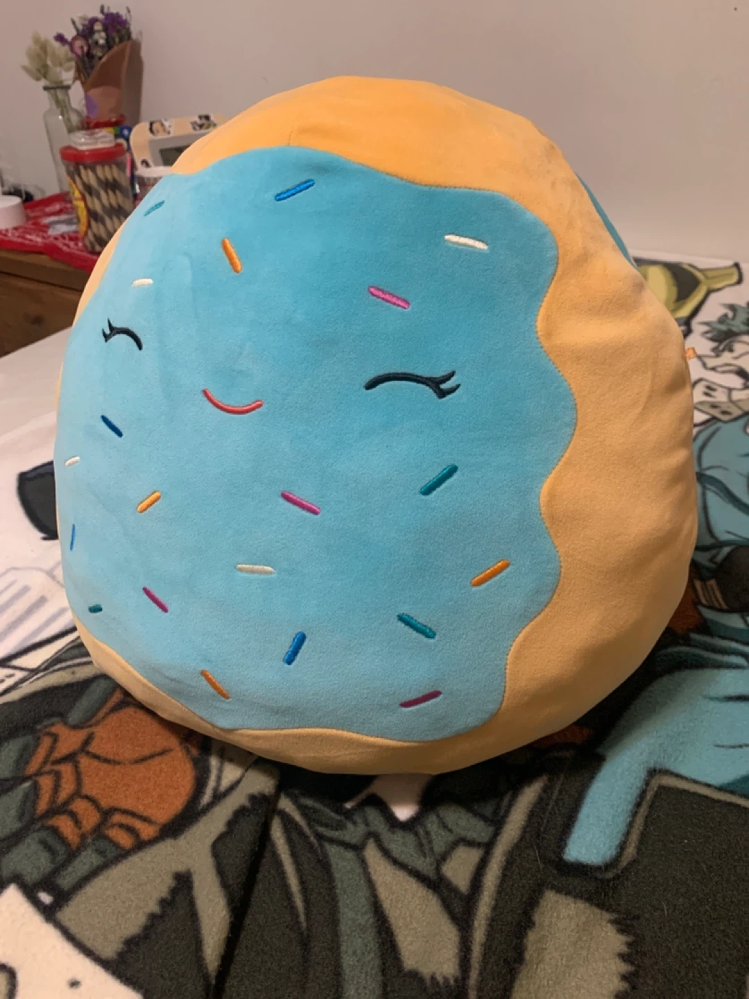 Looking to sell this super cute Squishmallows donut plush! It's in great condition and ready for a new home. The plush is soft and huggable, perfect for snuggling up with on the couch. It features a sweet donut design with colourful sprinkles.