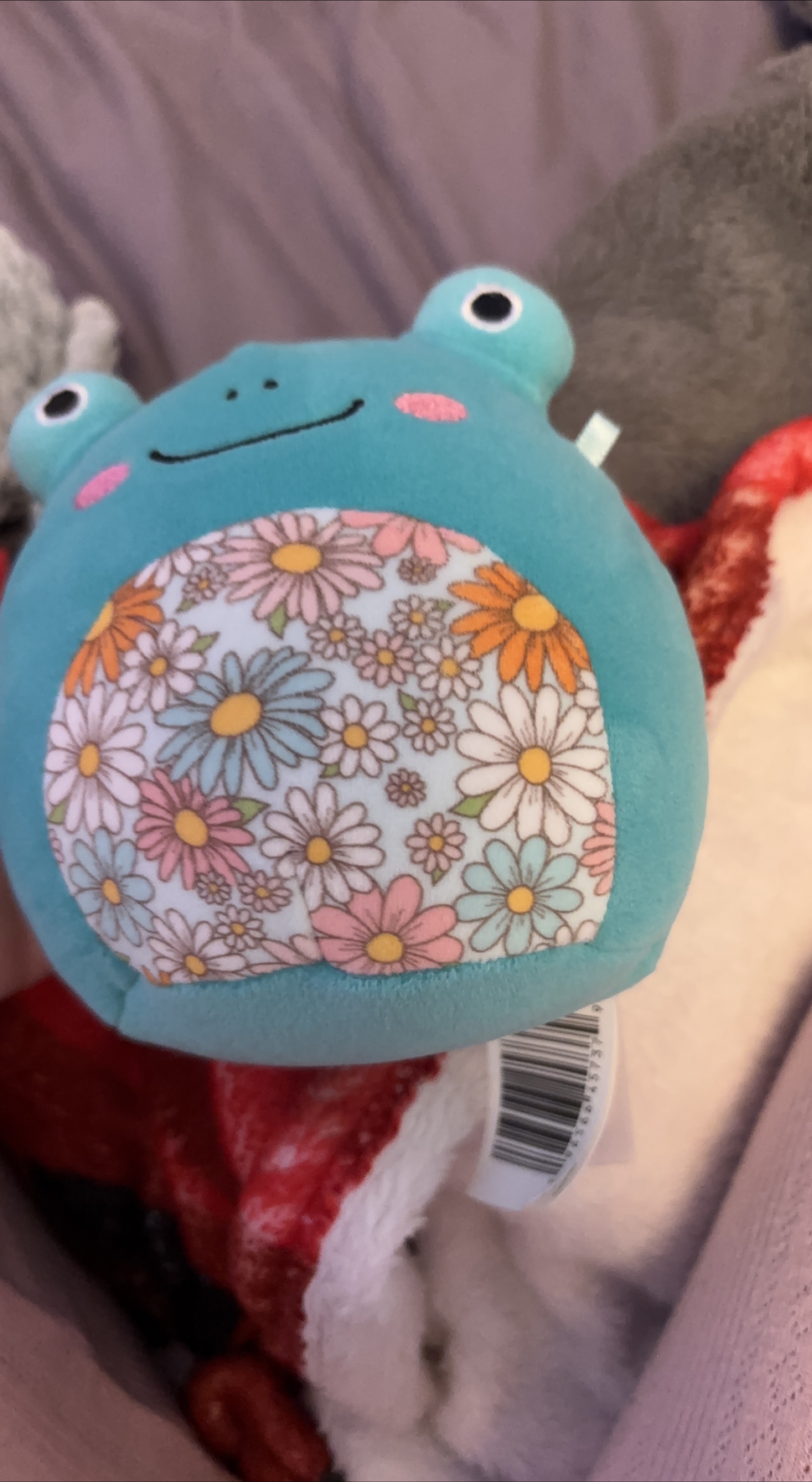 Super cute Squishmallows plush toy! This is a blue frog with a floral pattern on its belly. It's in great condition and ready for a new home
