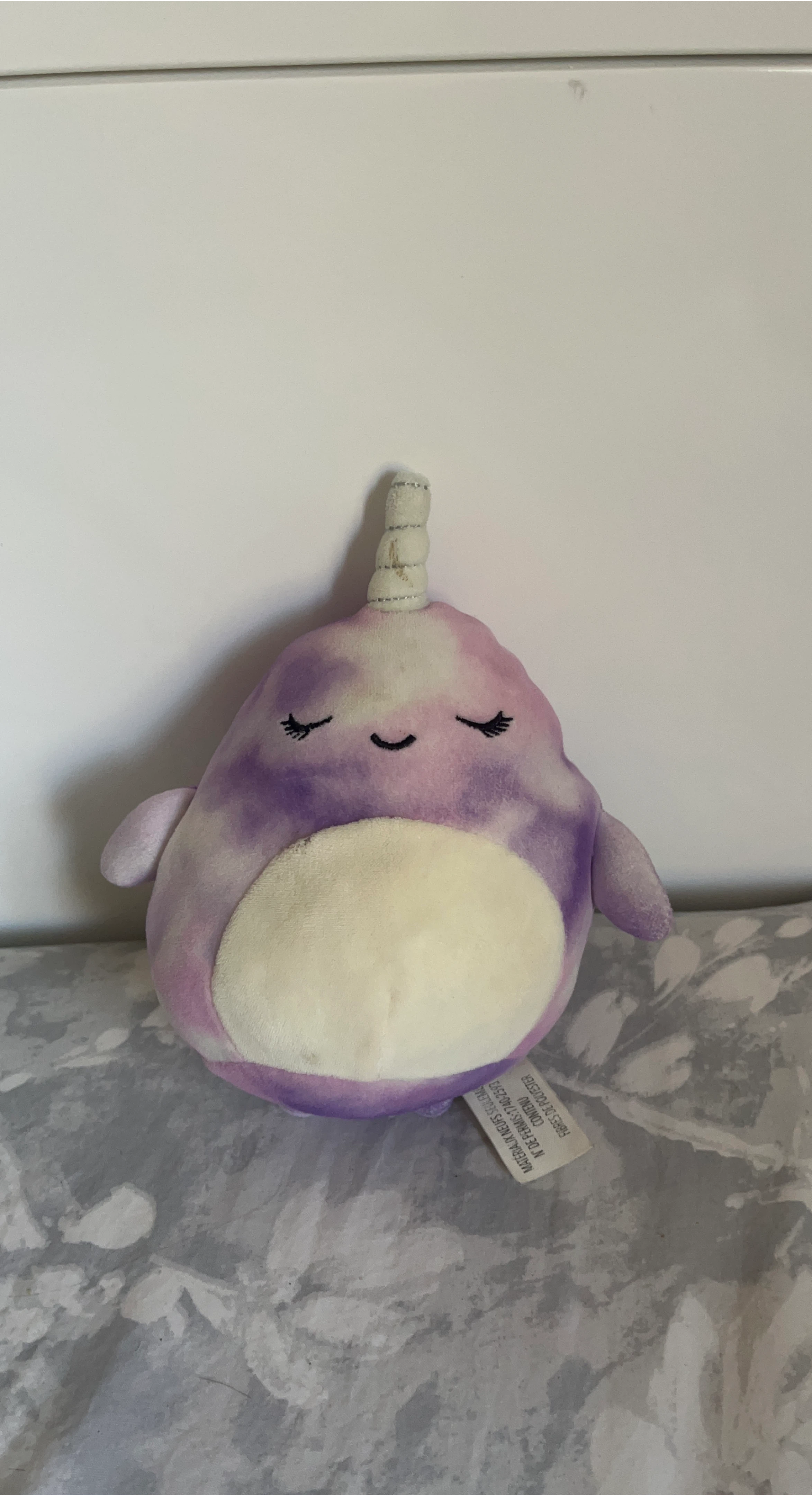 Looking to sell this adorable Squishmallows narwhal plush toy! It's in great condition and ready for a new home. Its soft, huggable design makes it perfect for kids and collectors alike. The plush toy features a cute narwhal design with a purple and white colour pattern. It's a great addition to any stuffed animal collection!