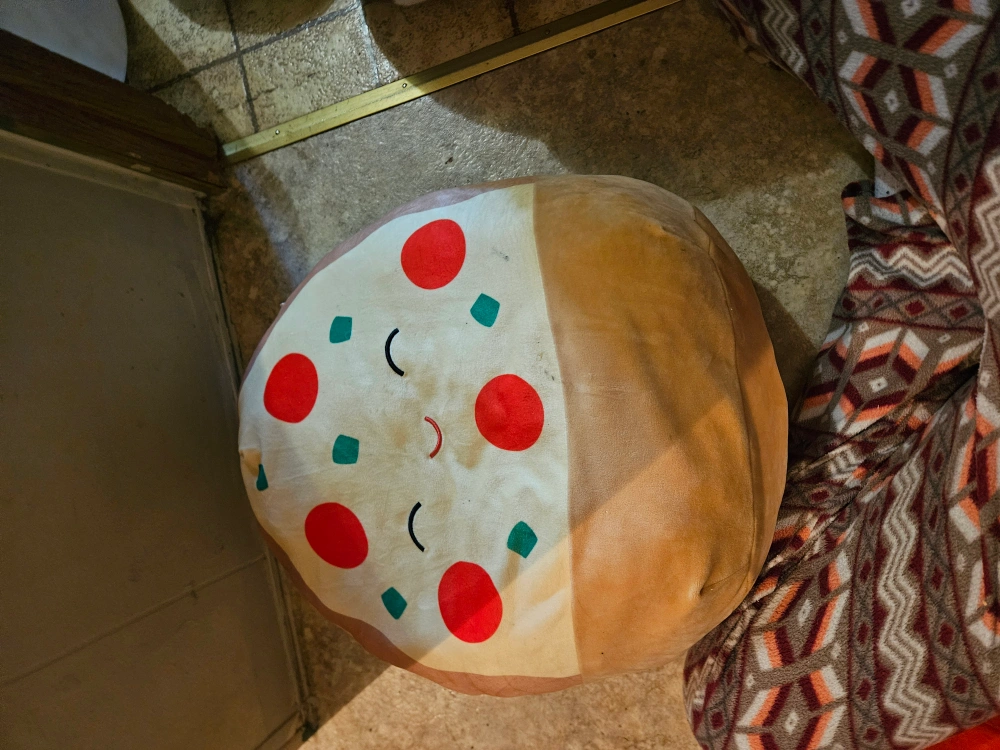 Selling a cute Squishmallows plush! It's shaped like a pizza slice. It's in great condition and super soft, perfect for cuddling