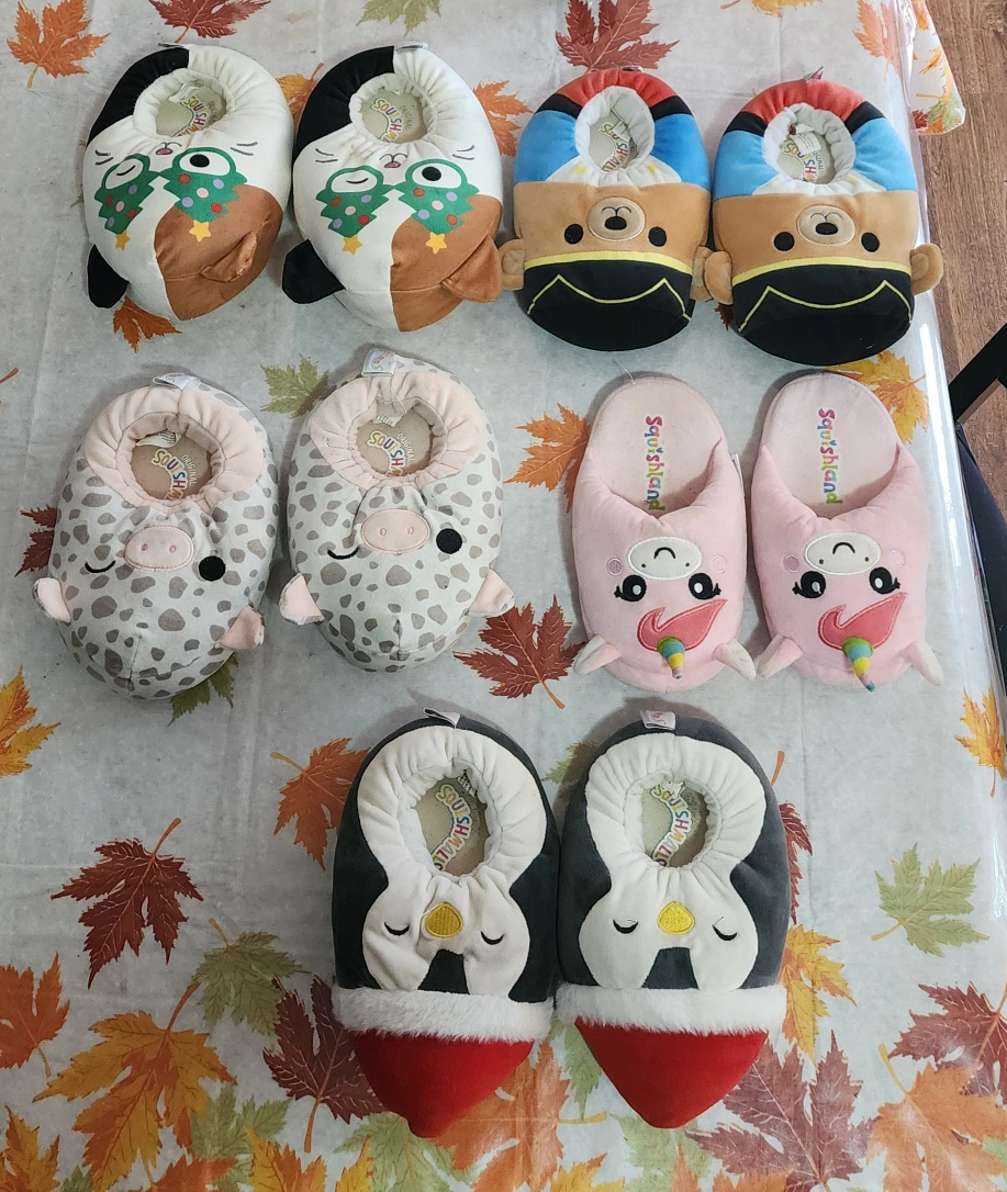 Selling a collection of Squishmallows slippers! They come in a variety of adorable characters: ๐ป- Cat with Christmas trees- size 2/3 ๐ป- bear nut cracker - 13/1 ๐ท -pig size 13/1 ๐ฆ Unicorn size 2/3 ๐ง santa hat penguin size 13/1 Super cute and comfy for lounging around the house asking 10$ each