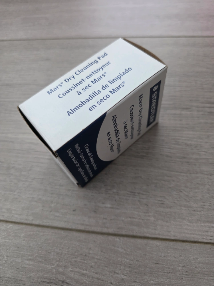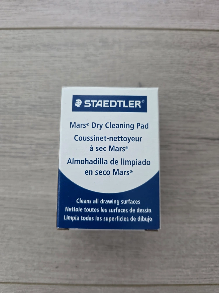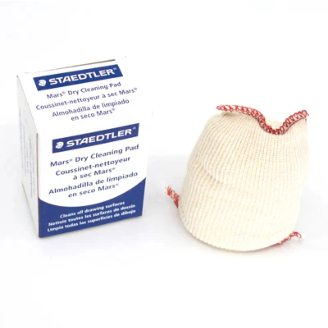 This Staedtler Mars Dry Cleaning Pad is non-abrasive and gently cleans all drawing surfaces. The soft cotton pad doesn't need washing and cleans completely without abrasion, static cling, or streaking. It's also great for absorbing dirt and other materials from drawings and tools