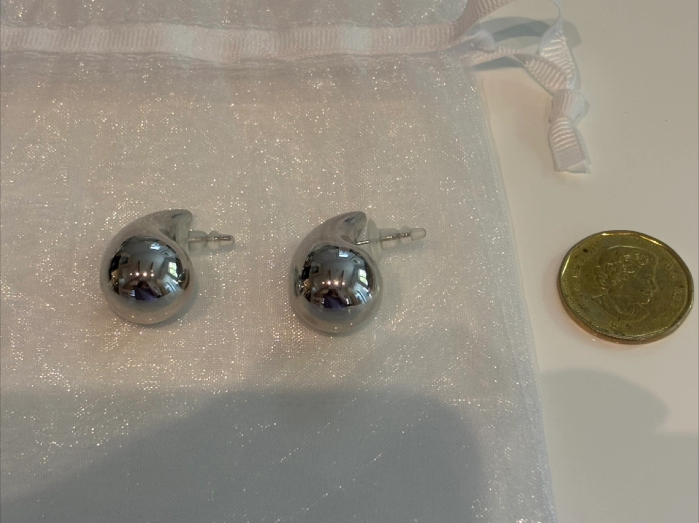 Cute silver teardrop stud earrings! These are in great condition and ready to add a touch of shine to any outfit Only worn once. Mint Condition. Price is Firm & Final. Comes with clear white pouch. Final Sale. Outdoor Porch Pick up only please near Bayview and Eglinton. Please feel free to take a look at the other items that I have for sale. Thank you