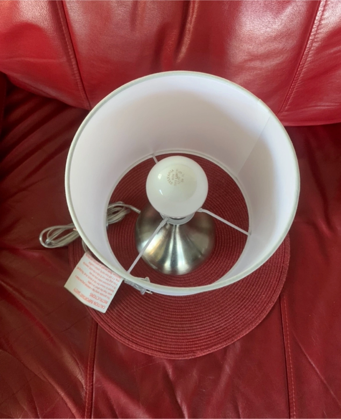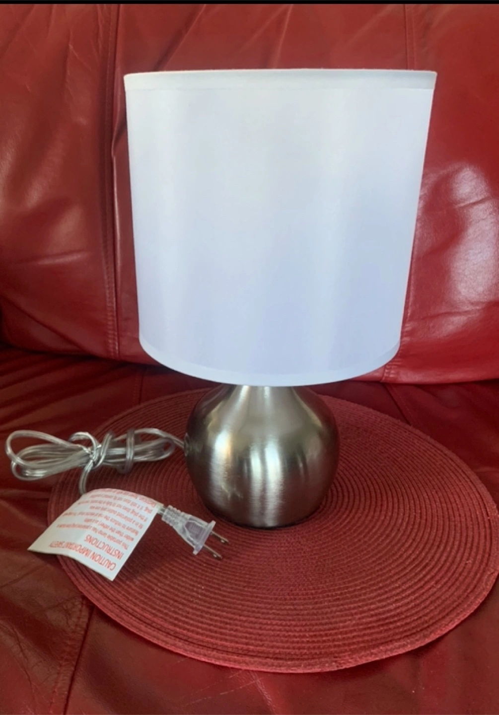 Selling a cute little table lamp! It has a Stainless Steel base and a white shade, perfect for a bedside table or desk. Total height is 13 inches. Shade width is approximately 7 1/2 inches. The model number is 052-0994-0. It's in great condition and ready to brighten up your space! $10 —-///—-///—-///—-///—- Check out my other ads for more great deals! Thanks for looking! —-///—-///—-///—-///—-