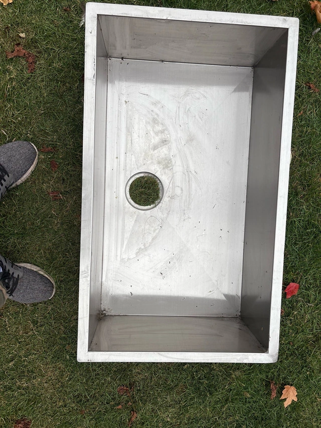 This stainless steel sink is ready for a Renovation project Ready to be installed in a home, or commercial or industrial setting. Sink Specs: * heavy gauge stainless steel Material: Stainless Steel * Condition: new old stock bin sitting needs a good cleaning in very good shape