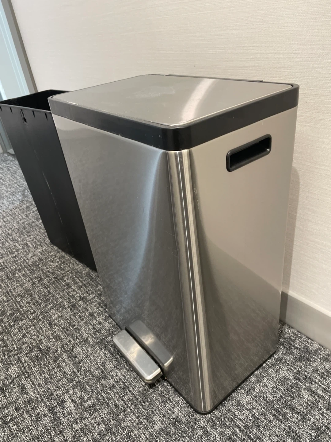 Selling a stainless steel step-trash can. It has a sleek design and a foot pedal for easy, hands-free operation. The inner bucket is removable for convenient cleaning. It's in great condition and ready for a new home! Open to Offers