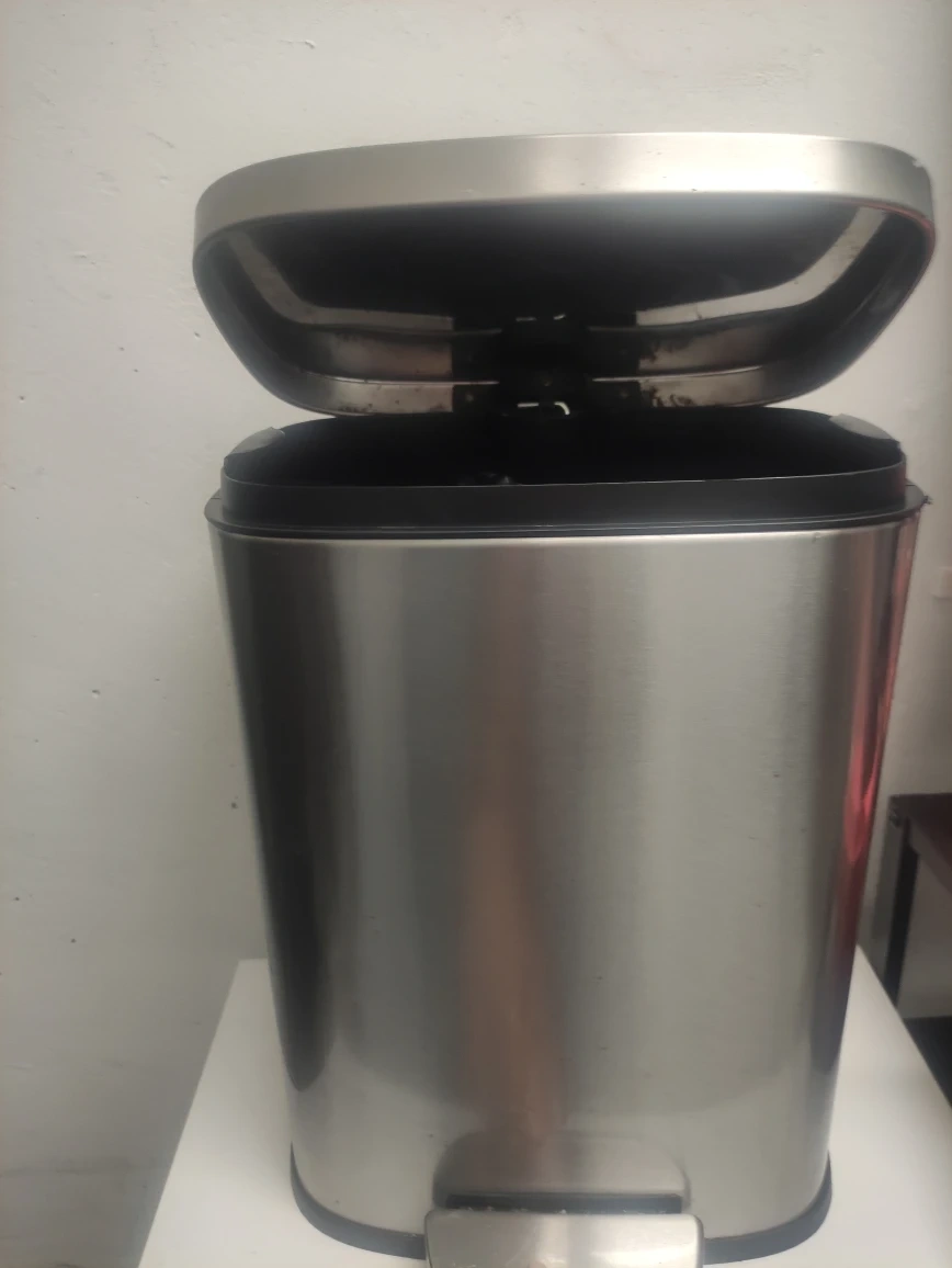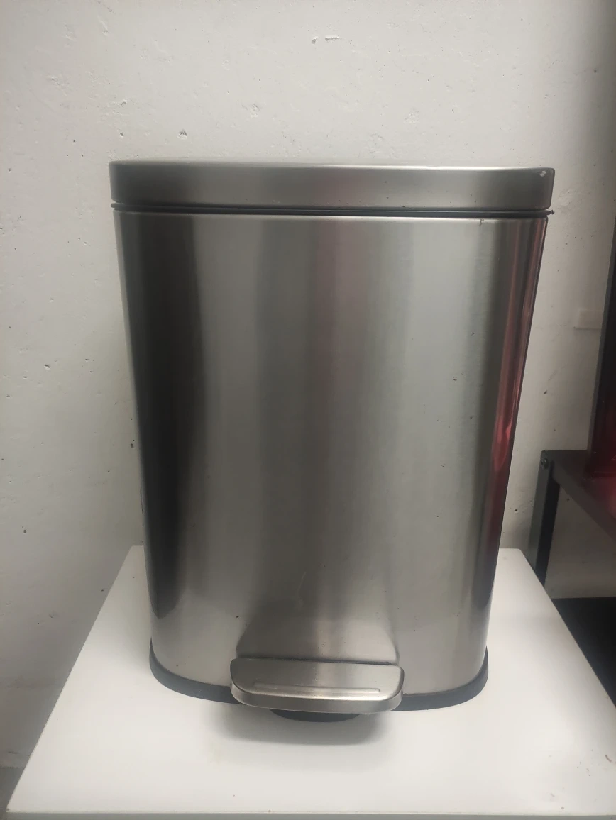 Selling a stainless steel step trash can! It's in great shape and ready for a new home. This trash can is perfect for any kitchen or bathroom, offering a sleek and modern look with its stainless steel finish