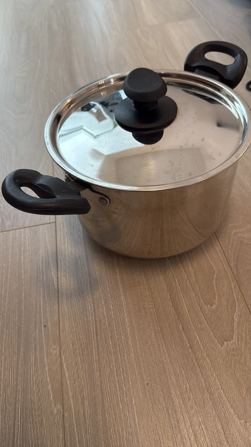 Selling a stainless steel stock pot with a lid! It's in great shape and ready for your next culinary adventure. Perfect for soups, stews, and more. It has two handles and a lid with a black knob.