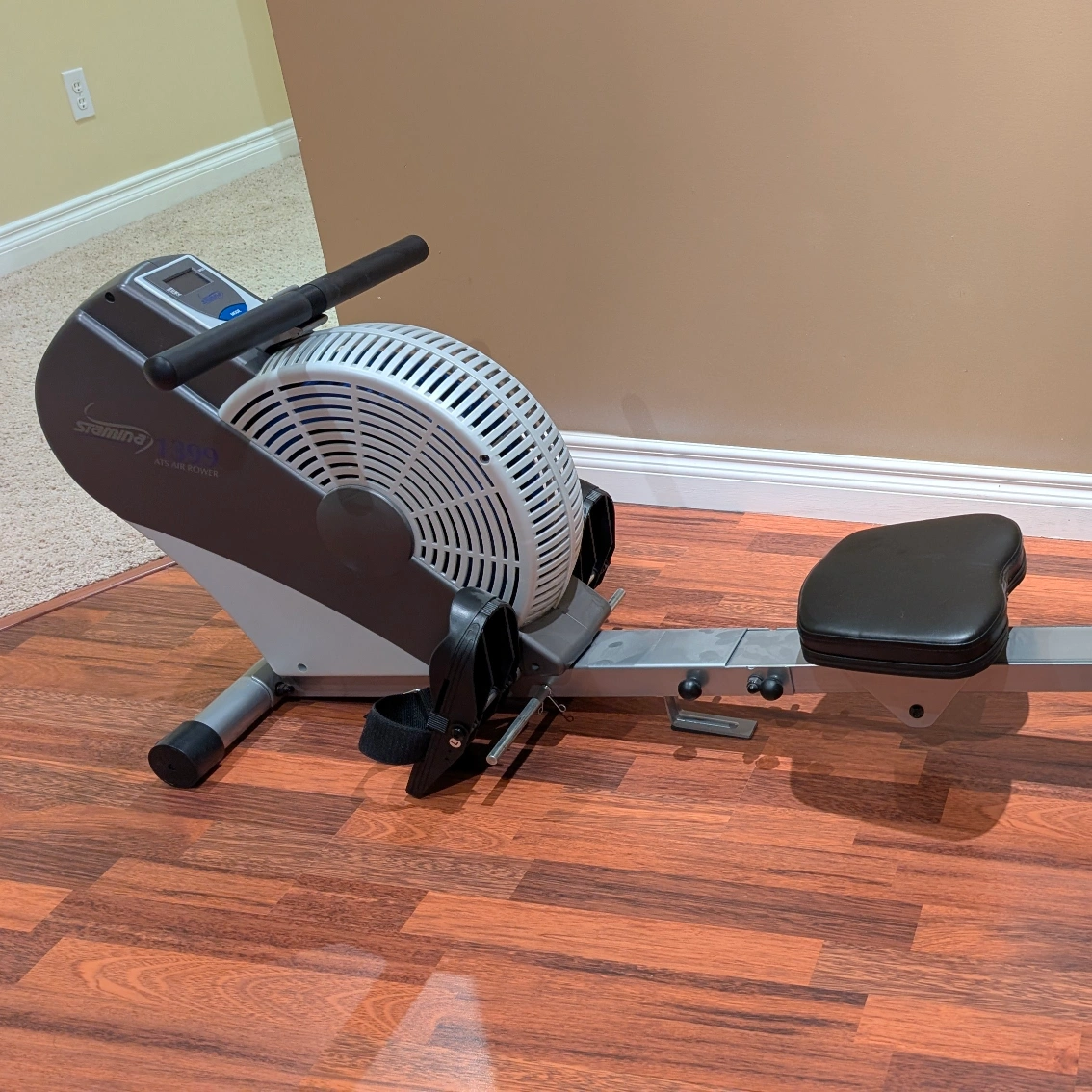 Get a full-body workout with this Stamina 1399 rowing machine, designed to provide an effective cardio and strength training experience. This used rowing machine is in excellent working condition and ready for your home gym. Here are some details: * Model: Stamina ATS Air Rower 1399 * Adjustable resistance * Folds up for easy storage Pickup only.