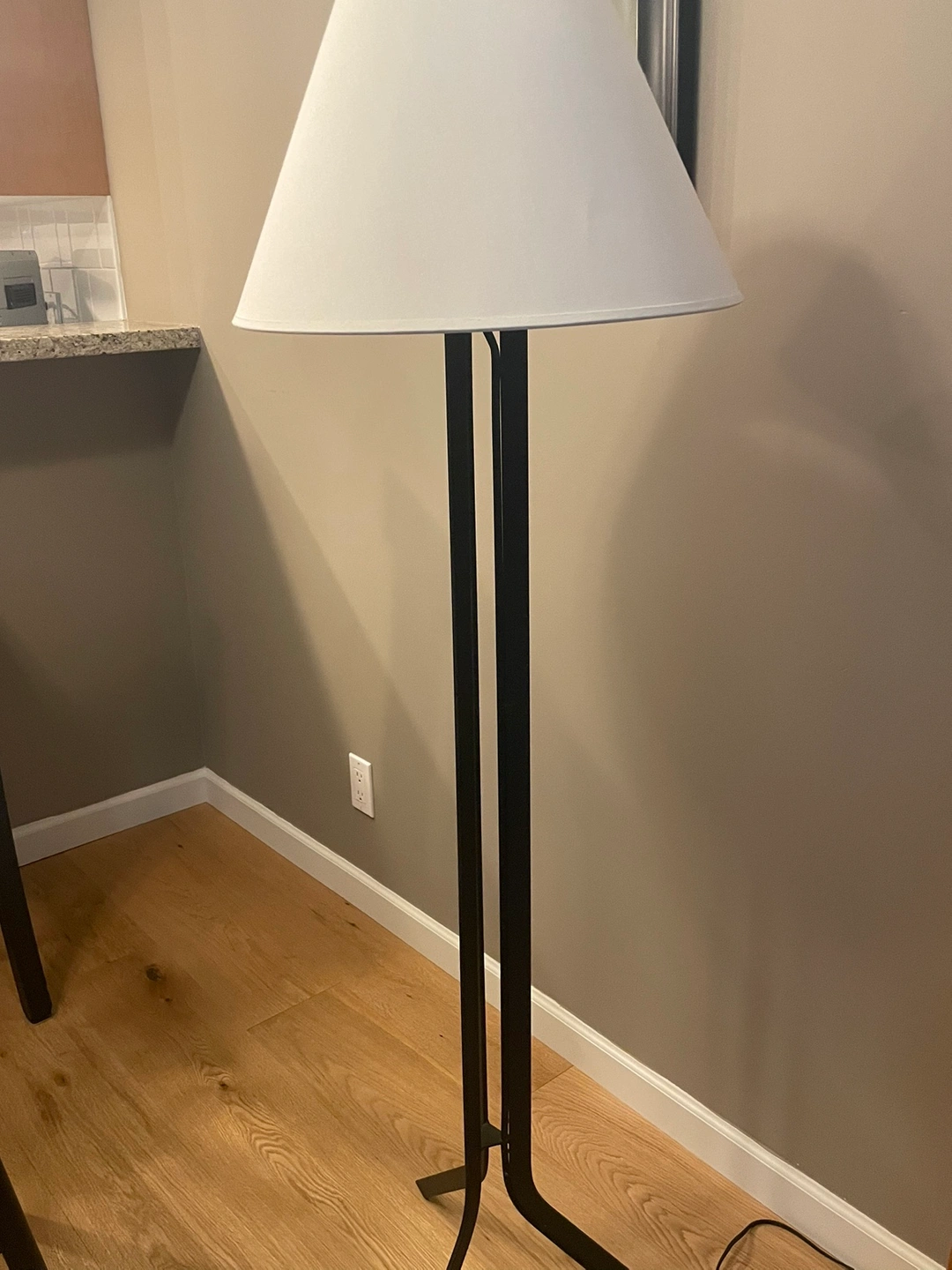 Beautiful and very lightly used. Metal base. 5 feet in hight. Great lamp for bedroom or living room. Available for pick up at Victoria Hill, New Westminster.