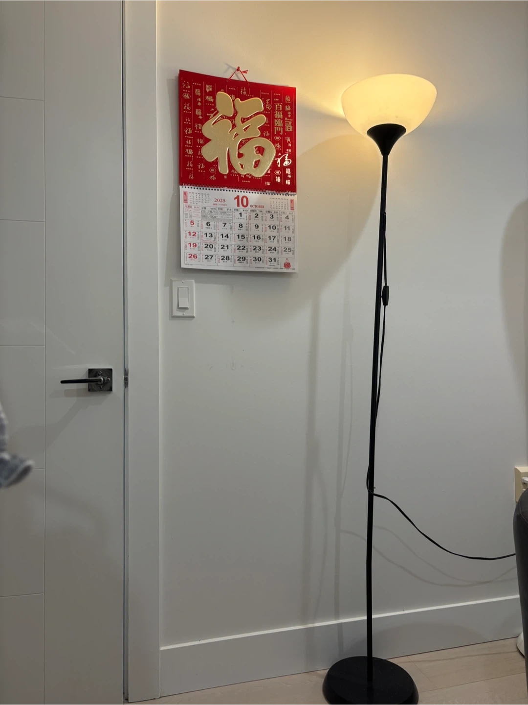 Selling a floor lamp in black. It's ready to brighten up your space!