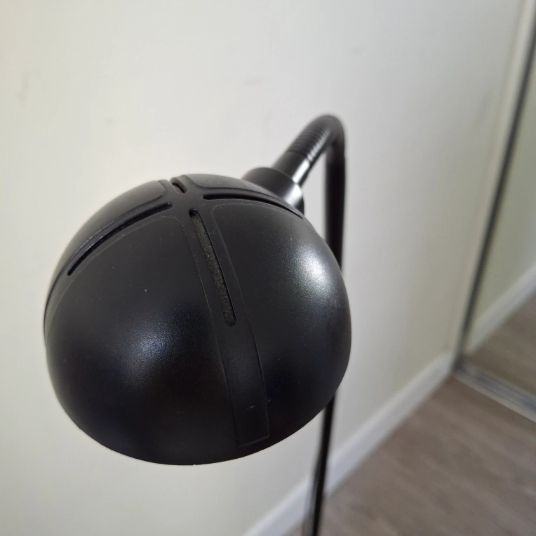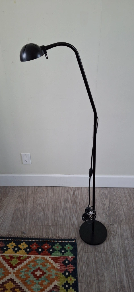 Floor lamp - standing, adjustable Height 4 ft. Great for reading corners Good condition 1 minor damage - the bendable holds for the glass is broken, shown in one of the pics, but works great still if you want to use without Pickup near Patterson Stn