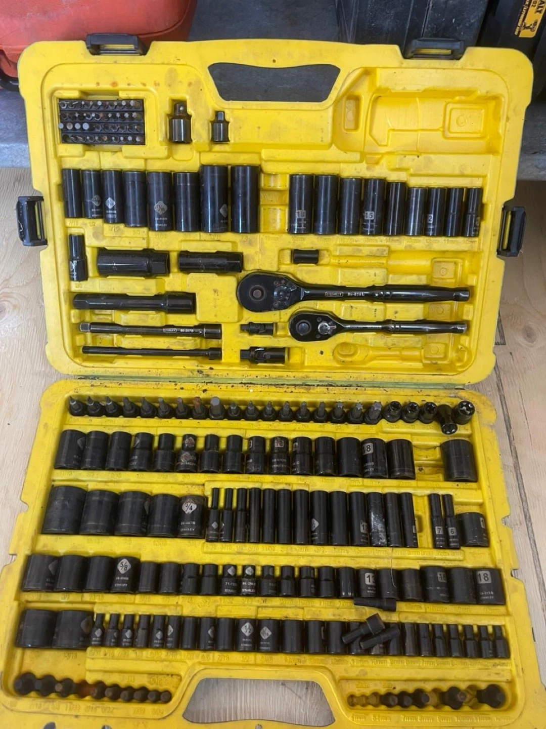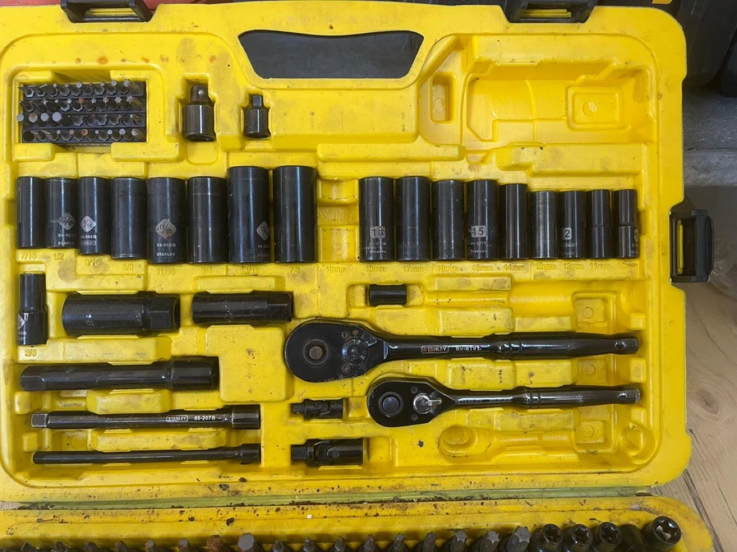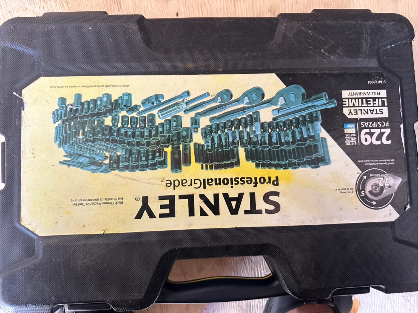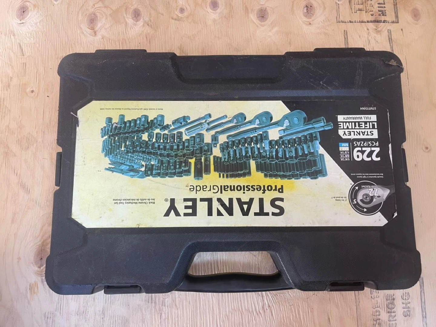 Selling a Stanley Professional Grade black chrome mechanics tool set. It comes in a yellow case and appears to have a full set of tools. Great for any mechanic!