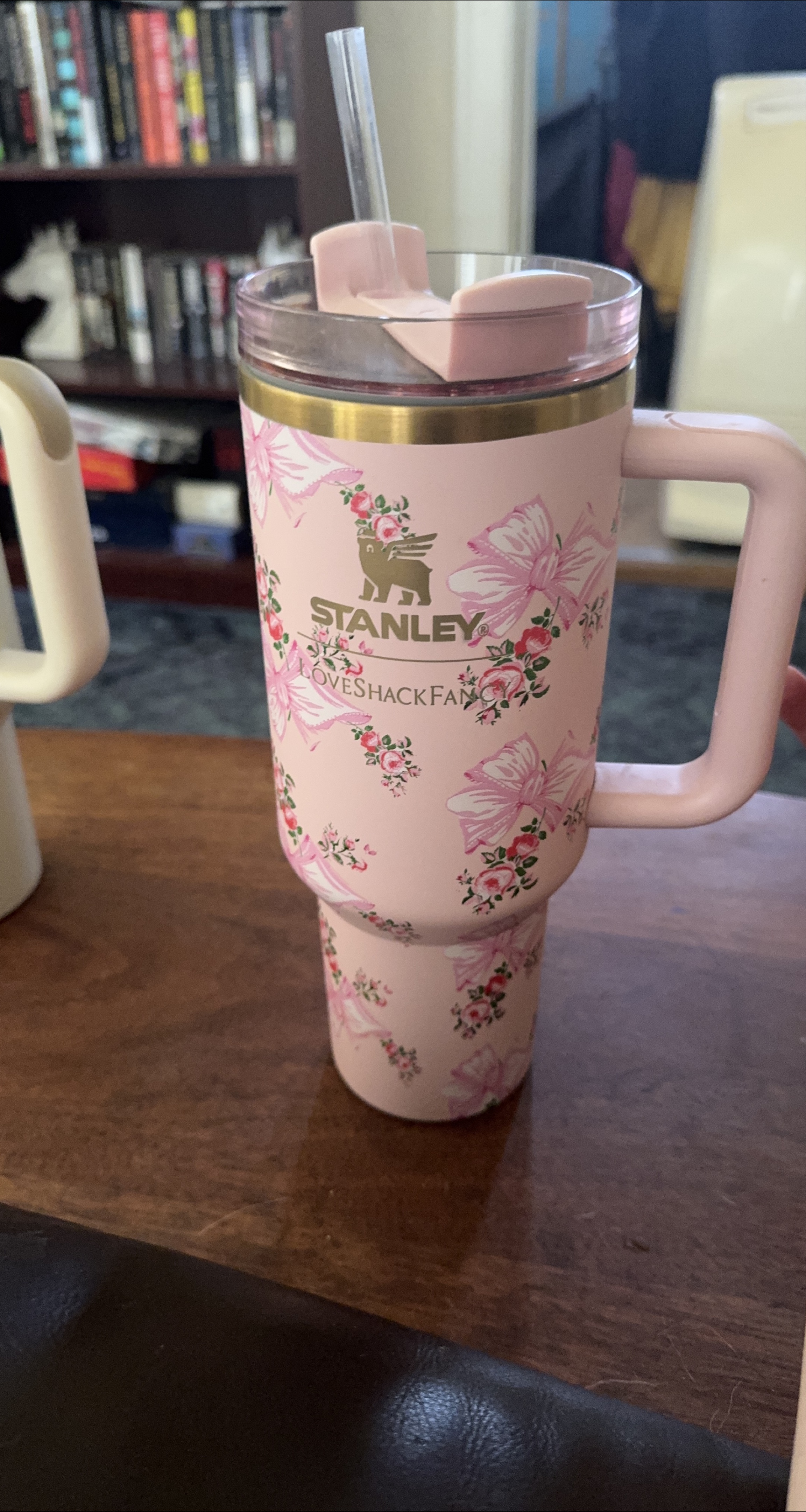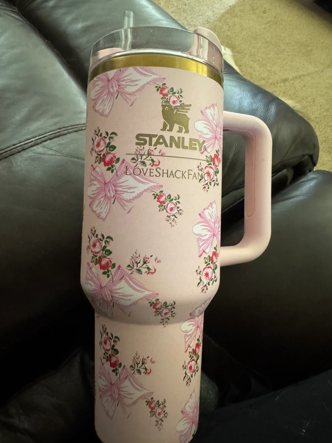 Snag this adorable Stanley x LoveShackFancy 40oz tumbler! It's in great shape and ready to keep your drinks cold or hot for hours. Perfect for staying hydrated in style!