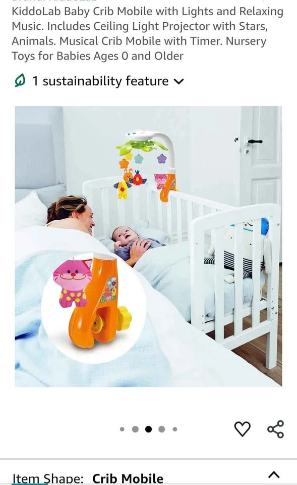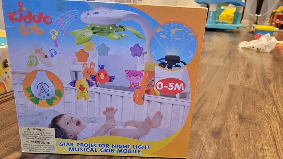 KiddoLab Baby Crib Mobile with Lights and Relaxing Music. Includes Ceiling Light Projector with Stars, Animals. Musical Crib Mobile with Timer. Nursery Toys for Babies Ages 0 and Older ROTATING MUSICAL MOBILE: Four adorable dream pets dance and twirl to help lull newborn infants to sleep. A STELLAR LIGHT SHOW PROJECTS OVERHEAD: After the nursery room lights go out, an enchanting light show of the moon and stars projects onto the ceiling. CALMING MUSIC OR SOOTHING SOUNDS: This captivating crib mobile comes equipped with several optional soundscapes. Choose between music that stops after fifteen minutes, continuous soothing lullabies or gentle nature sounds to help your precious little ones fall fast asleep. EFFORTLESS INSTALLATION: Kiddolab’s entrancing crib mobile features a simple yellow knob that easily attaches to cribs with sturdy rails and spindles. SAFE FOR DELICATE NEWBORNS: Made from BPA-Free materials, this crib accessory is completely safe for infants to experience and explore in all the ways that curious babies do.