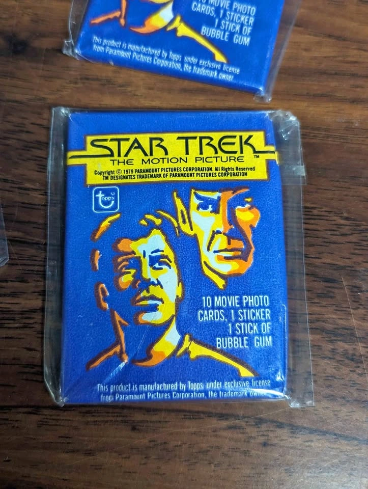 Trading Card Packs from the original Star Trek movie. Still sealed, and include bubble gum, although I cannot guarantee the condition of the gum and would not recommend chewing it. $10 per pack, or all 11 for $100. Located in Belleville