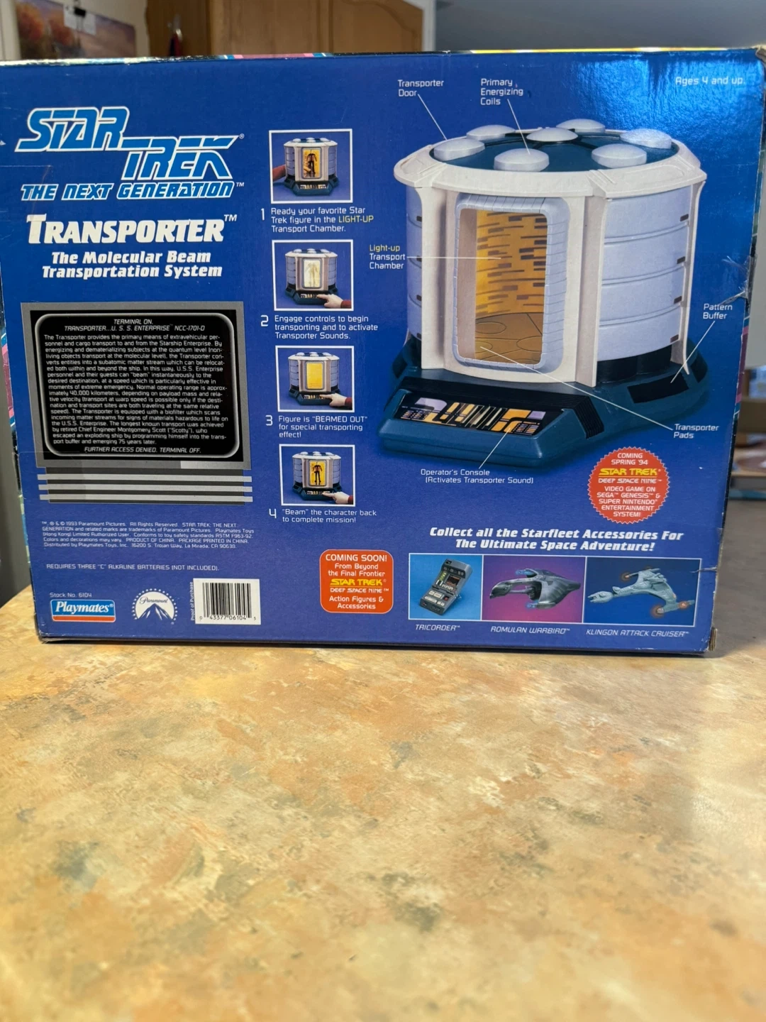 Selling a Star Trek: The Next Generation Transporter toy! This is the molecular beam transportation system from the final frontier. It features a special transporting effect and transporter sounds.