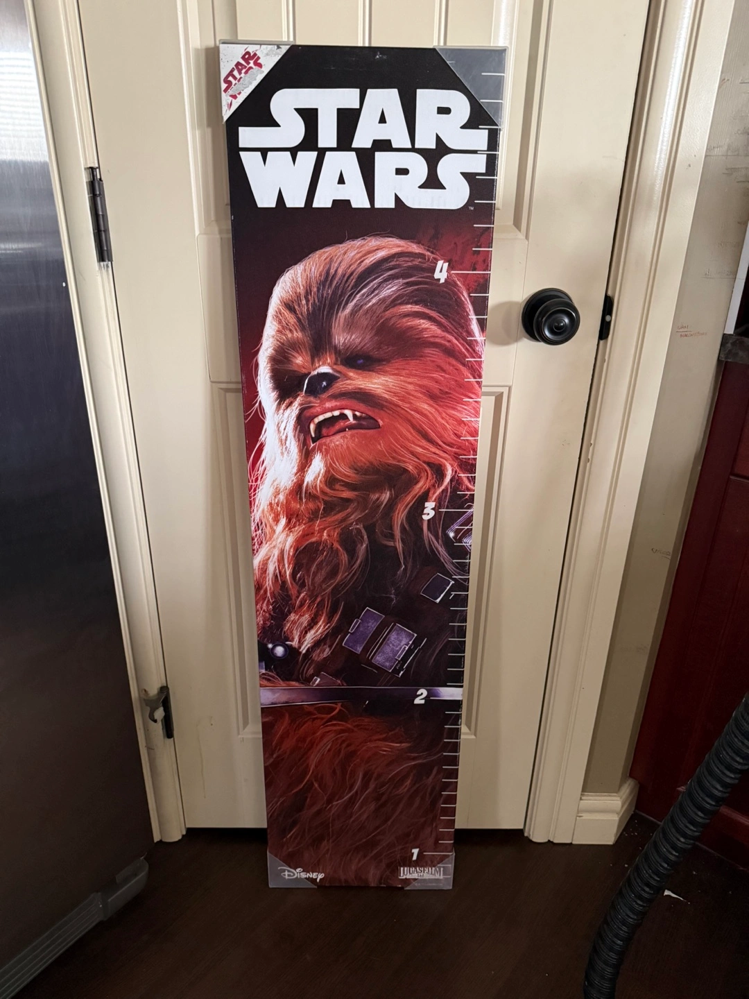 Star Wars Chewbacca growth chart! features everyone's favourite Wookiee, Chewbacca, and measures from 1 to 4 feet. Perfect for a Star Wars-themed room!