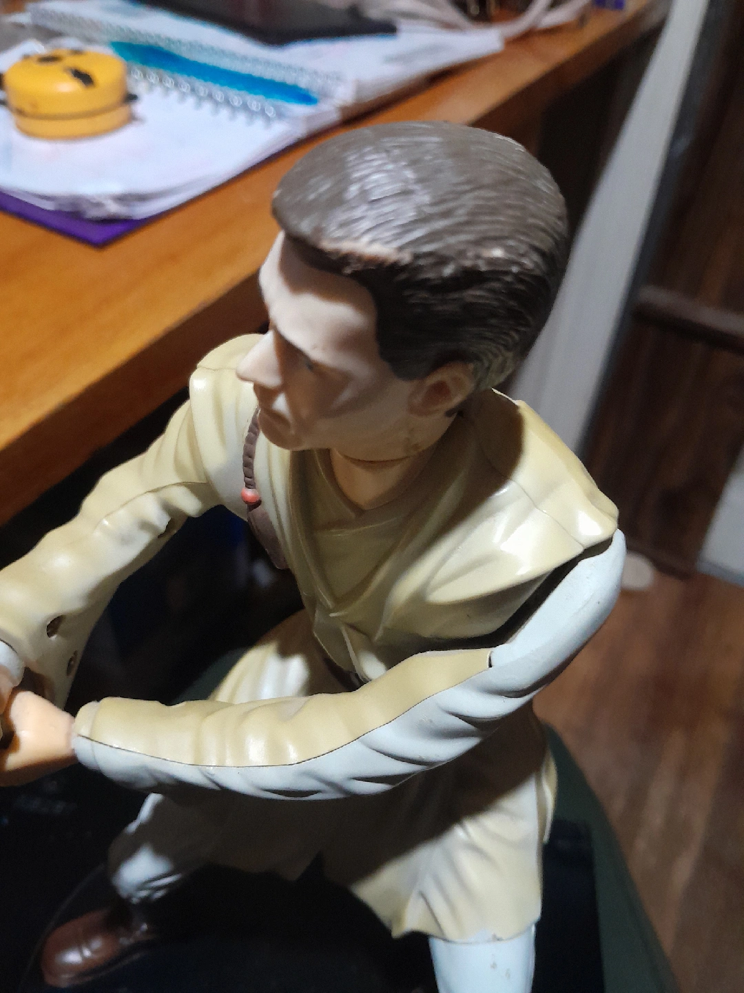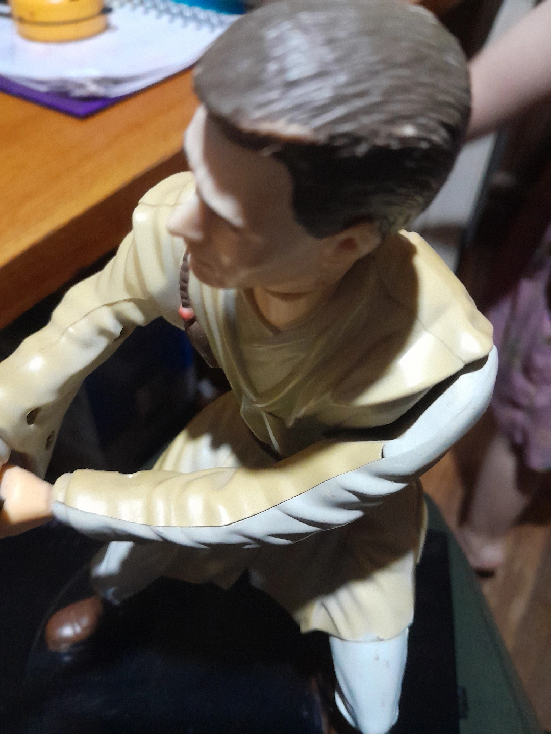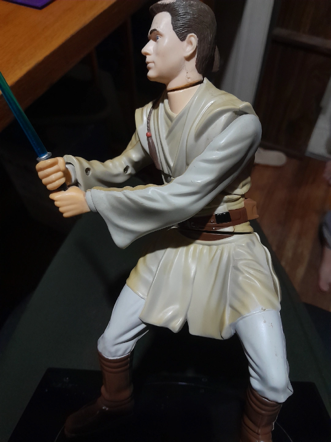 Selling a pre-owned Star Wars Obi-Wan Kenobi action figure piggy bank. It's in good shape and ready for a new home! It's a great piece for any Star Wars collector or fan. it does have some cosmetic scratches and its missing one of the battery covers and the coin stopper. but works well