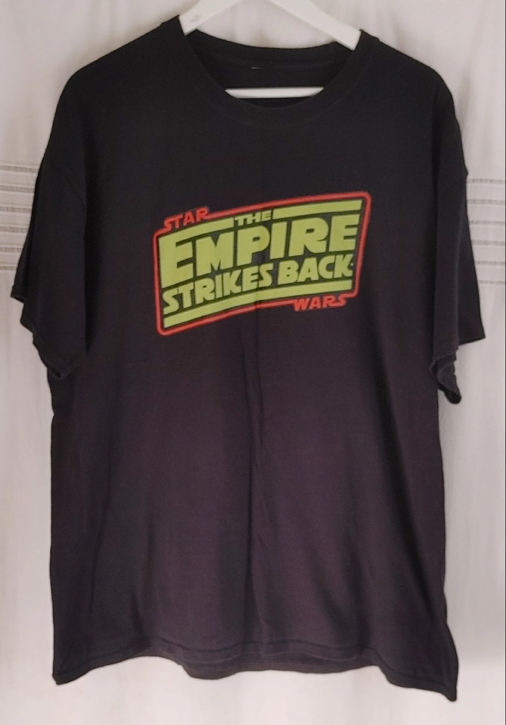 Men's black Star Wars t-shirt featuring "The Empire Strikes Back" logo on the front. The back has the Imperial crest. Shirt is on good condition. No rips, stains or fraying. Smoke free home pick up Mt.Brydges cash only.