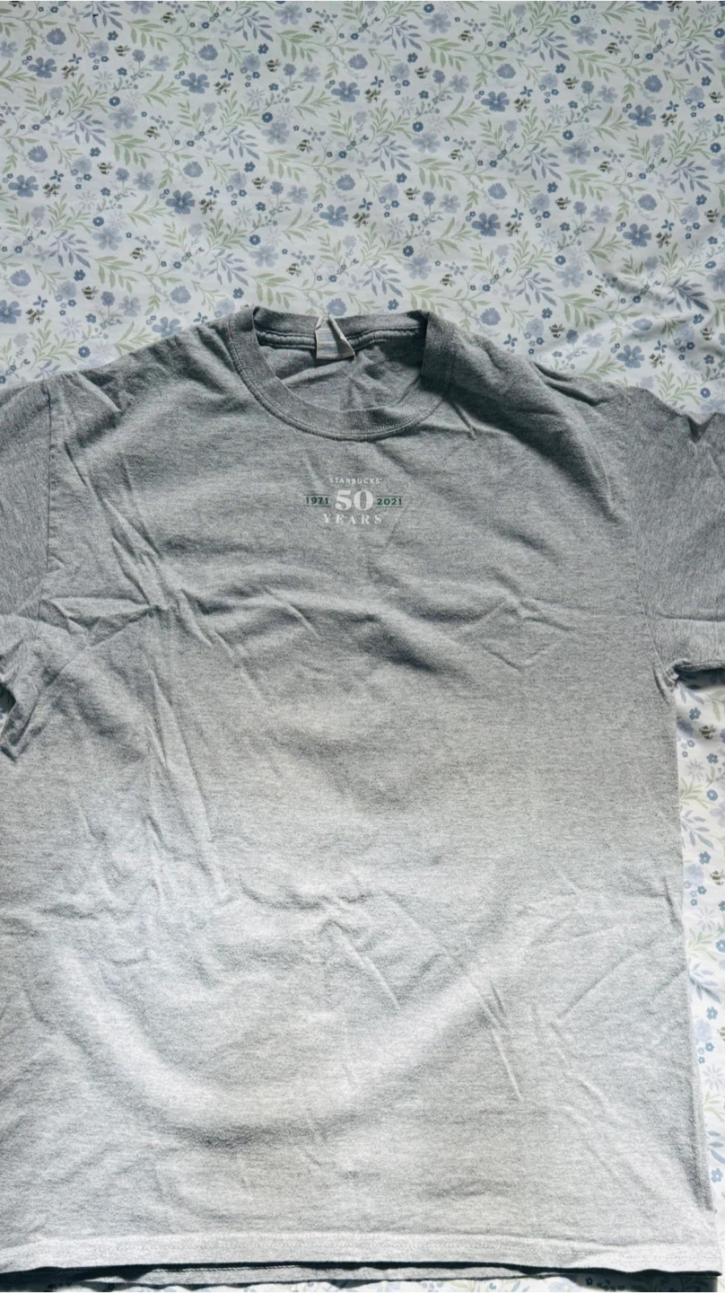 Selling a Starbucks 50 Years T-Shirt in grey! It commemorates the years 1971-2021. A great piece for any Starbucks fan!