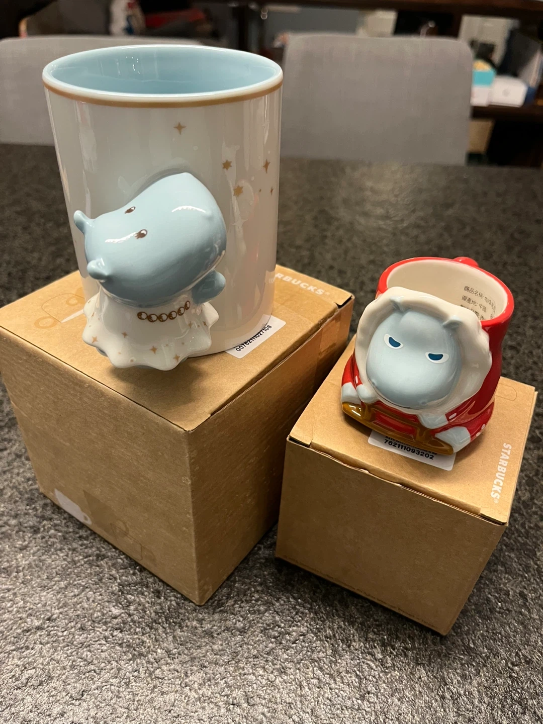 Selling a super cute Starbucks mug set featuring a hippo character! They're both brand new in their original boxes, ready for a new home. Mug (355 ml) $25 Espresso Mug (89ml) $20 Take Both $40 Preferred pickup Derry Rd. and 10th Line in Mississauga