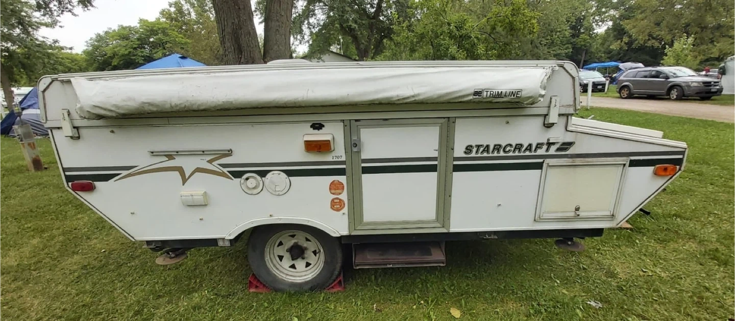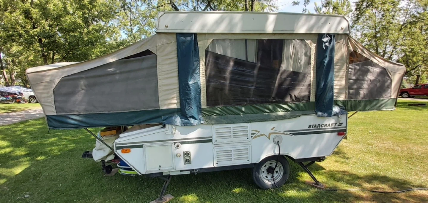 Starcraft Pop-up Camper – Great Opportunity! Good condition and ready for camping! ✅ Easy to set up and take down ✅ Comfortable space for family/friends ✅ Solid structure and canvas in good shape ✅ Compact and easy to tow/store Perfect for anyone who loves traveling and enjoying nature with comfort and practicality. 💲Price: $3,000 📞 Call or text: 289-259-3209
